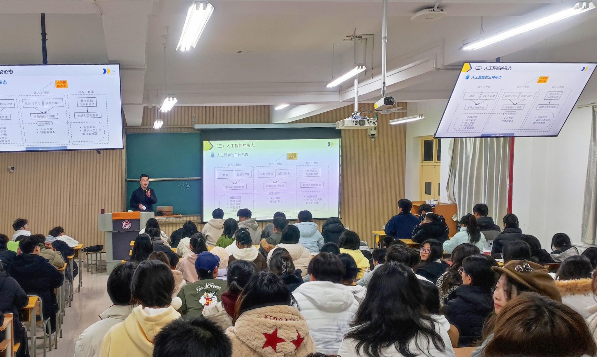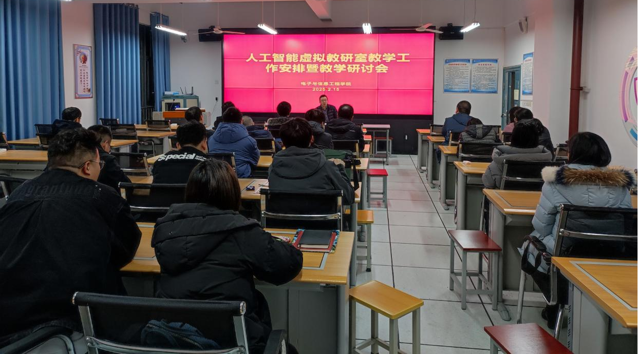 虚拟教研室聚力,教研协同破难题。为确保课程高质量实施,学校成立“人工智能通识课程虚拟教研室”,由教务处、电子与信息工程学院牵头,汇聚各二级学院骨干教师及行业专家,形成跨学科教研共同体。2025年1月16日,教研室召开首次课程建设推进会,邀请北京师范大学王学松教授、北京林业大学崔晓晖副教授作专题报告,为学校人工智能通识课程建设提供了多层次、多角度的指导与创新思路。2月15日,教研室召开新学期教学工作安排暨课程教学研讨会,对课程教学大纲进行全面解读并制定了详细的教学计划和任务分工。
