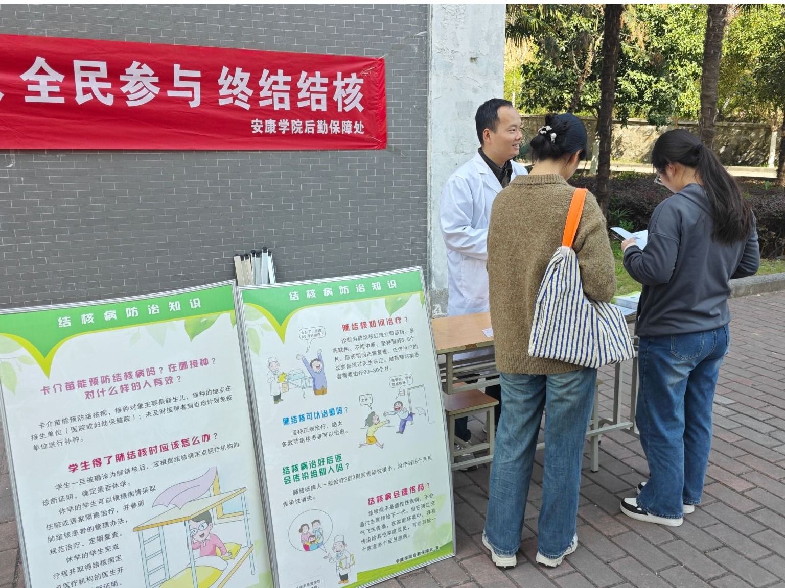 上午,由校医疗中心工作人员在两校区设置健康咨询服务点。通过悬挂主题横幅、发放《结核病防治手册》、展示科普展板等形式,重点讲解结核病的传播途径、预防措施等核心知识。累计接待咨询300余人次,发放宣传资料800余份。