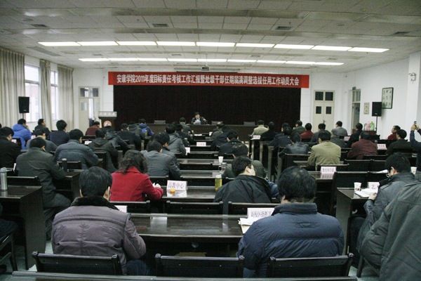 会后,进行了2011年度目标责任考核学院领导测评和系统互评,并给副处级以上干部发放了《报名须知》和《安康学院处级岗位申请报名表》。