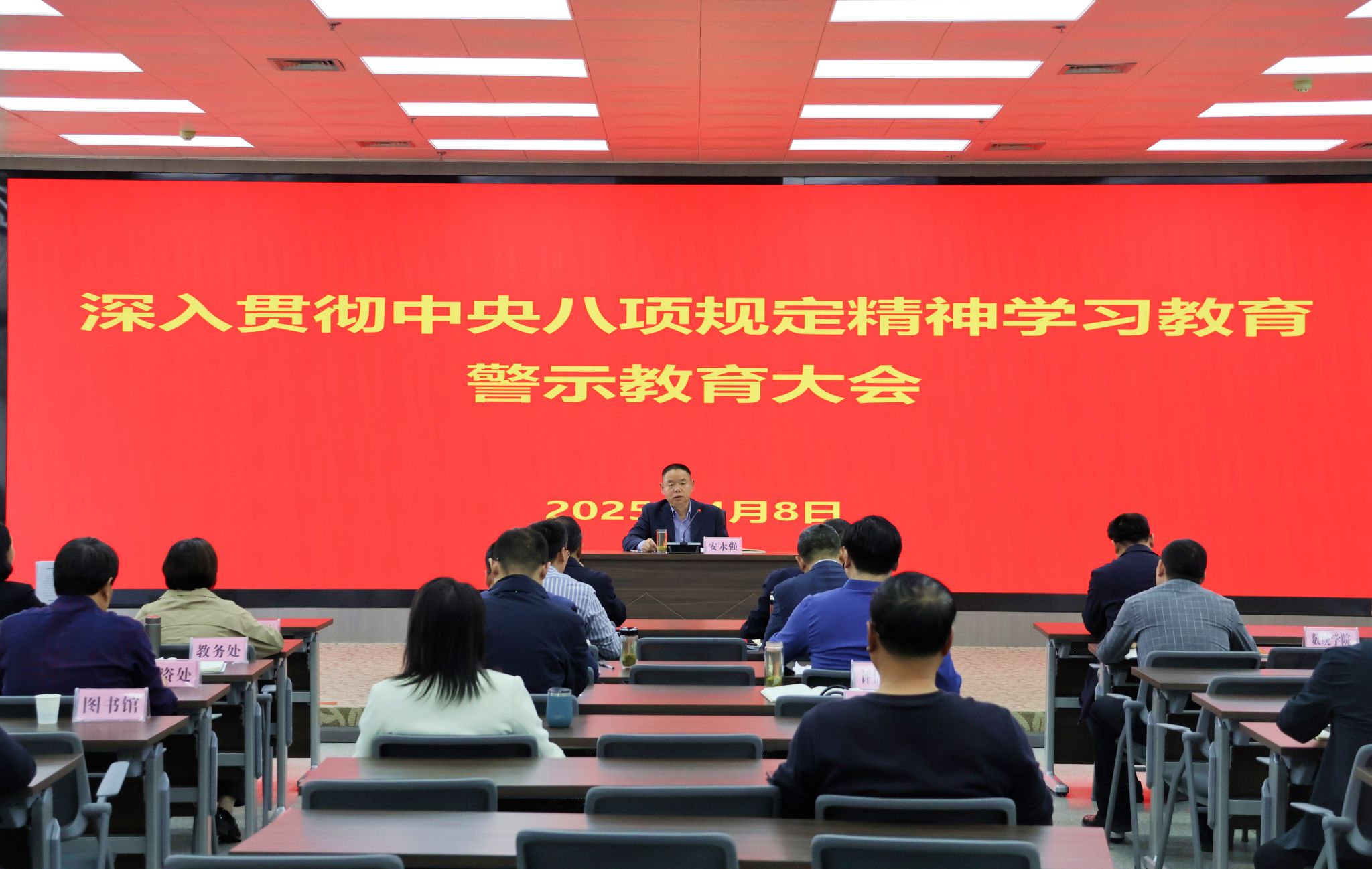 4月8日下午,我校召开深入贯彻中央八项规定精神学习教育警示教育大会,学校领导和二级单位主要负责人参加了会议。