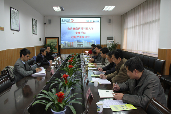 在19日举行的交流座谈会上,王兴林代表学院对陈铭田一行的来访表示欢迎,希望双方能建立长期友好的合作关系,在合作方式及领域上进行创新和拓展,增进交流开展实质性合作。陈铭田副校长向我方与会人员介绍了嘉南药理科技大学的状况,药学系林恒弘教授就该校的院系设置、专业方向等进行了详细的介绍。我院相关院系负责人分别就院系的专业设置、科研方向等向来宾做了介绍。宾主双方就联合办学的相关事宜进行了深入探讨和交流,并取得共识。