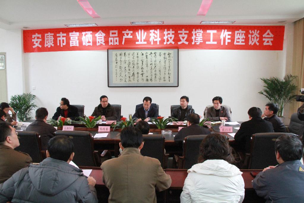 12月21日下午,安康市富硒产业科技支撑工作座谈会在我院召开。副市长巨拴科、安康学院党委书记杨涛,副院长向纪明、陈刚等出席会议,市发改委、科技局、质监局等职能部门负责人及富硒产业相关单位负责人、我院相关科研机构负责人参加了座谈会。会议由巨拴科主持。