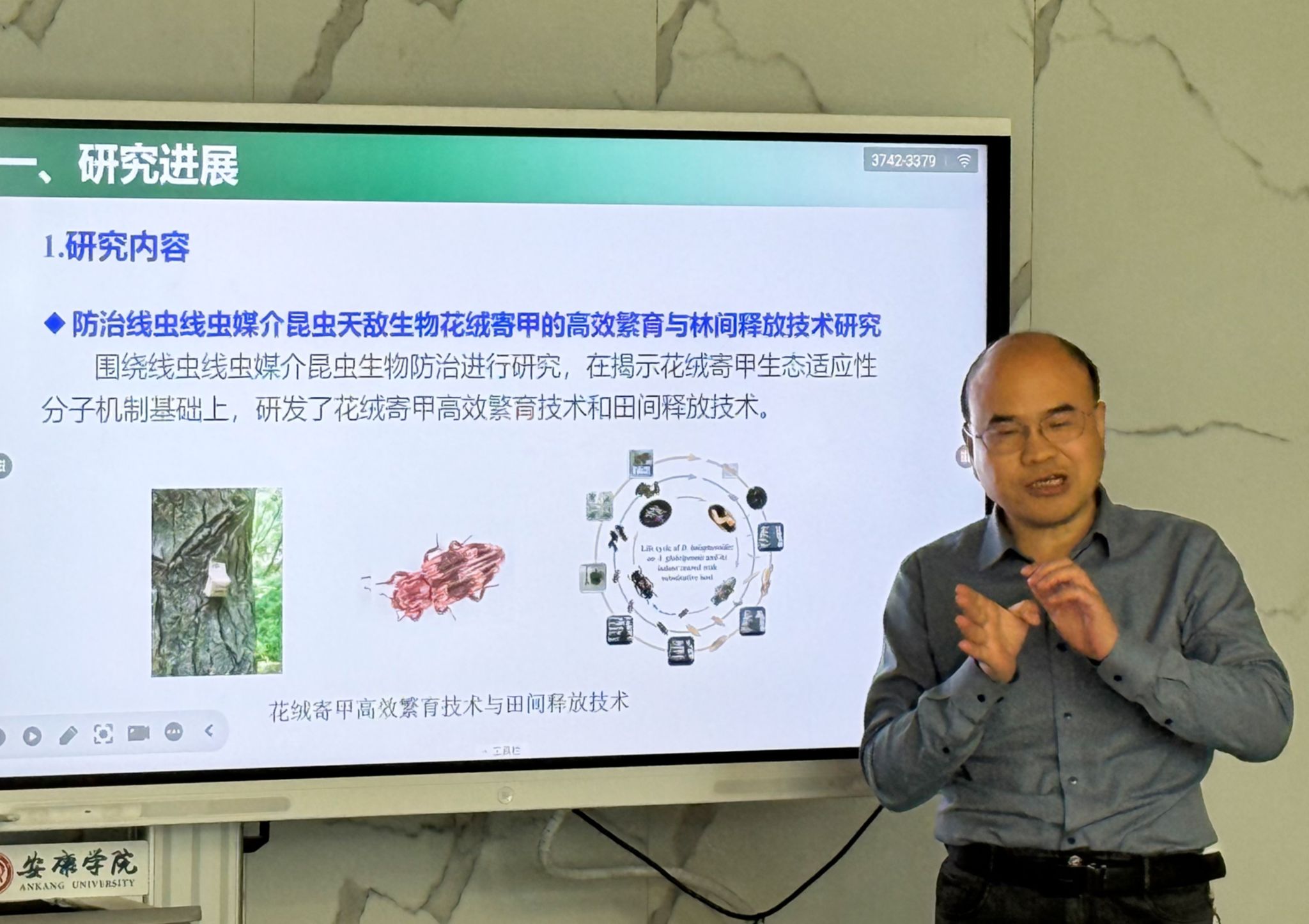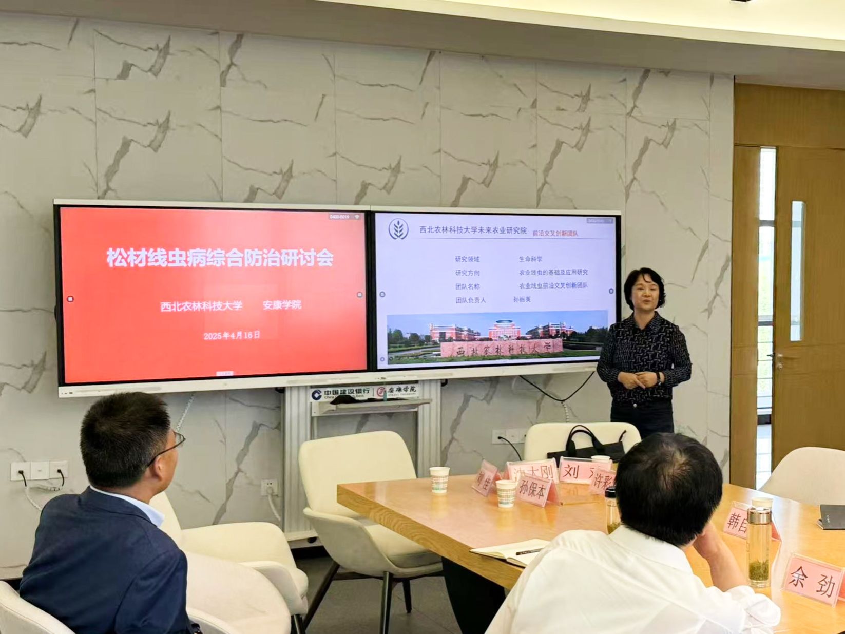 会上,孙丽英教授介绍了团队在松材线虫致病机制及绿色防控技术方面的研究进展;唐光辉教授结合多年实践经验,分享了松材线虫病的防治现状及挑战;韩自端教授就松材线虫病的专项研究设计进行了详细阐述。随后,安康学院教师刘欢汇报了松材线虫病在安康地区的发生情况,为后续防控工作提供了重要参考。