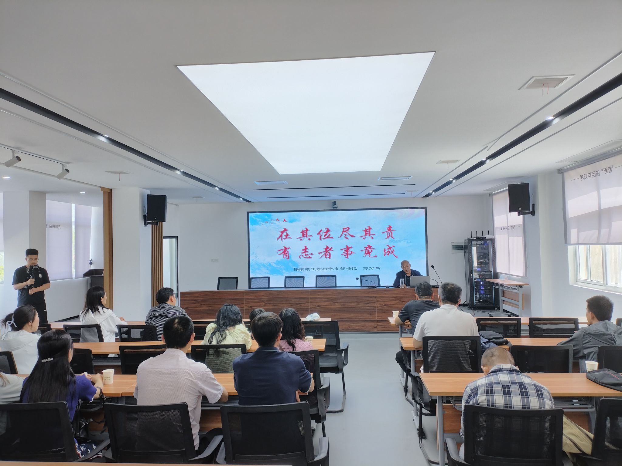 在王院村乡村振兴学堂,陈分新讲述了带领村民团结奋斗、产业振兴的实践历程。他强调,乡村振兴需以责任为基、以深植乡土的情怀为纽带,通过创新创造激活发展动能。这场生动的党课让师生们深刻领悟:党员干部要扛起时代使命,将“国之大者”融入乡村建设;王院村的蜕变印证了创新驱动发展,学院的高质量发展同样需要教职工以学促干、接续奋斗。