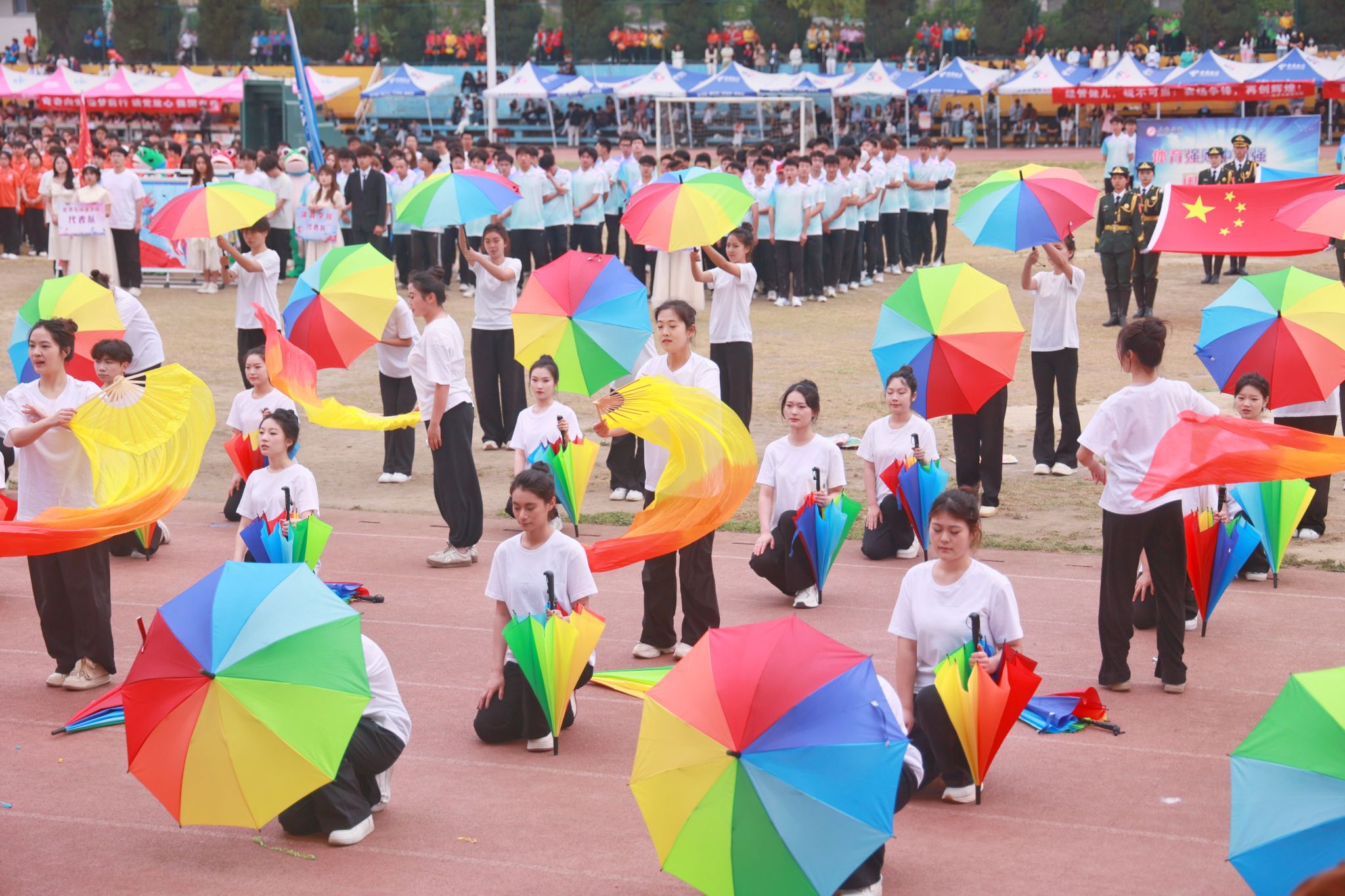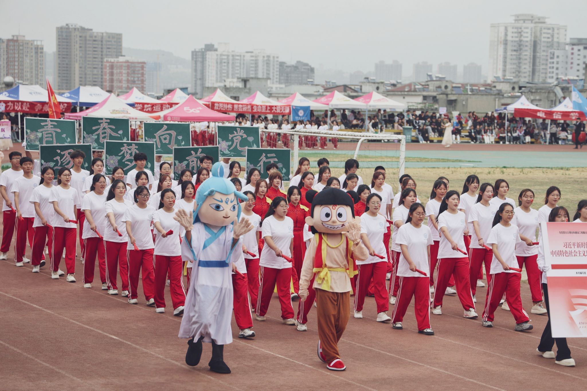 十二个学院组成的学生方阵和教职工方阵精神抖擞、步伐矫健地走过主席台,他们身着整齐统一的服装,喊着响亮有力的口号,展现出我校师生积极向上、团结奋进的精神风貌。舞龙队腾跃九霄、柔力球刚柔并济、创意秋舞灵动飘逸,花球方阵炫彩夺目,各表演队伍以融合专业特色的创意节目,谱写出体育与艺术交织的青春诗篇。