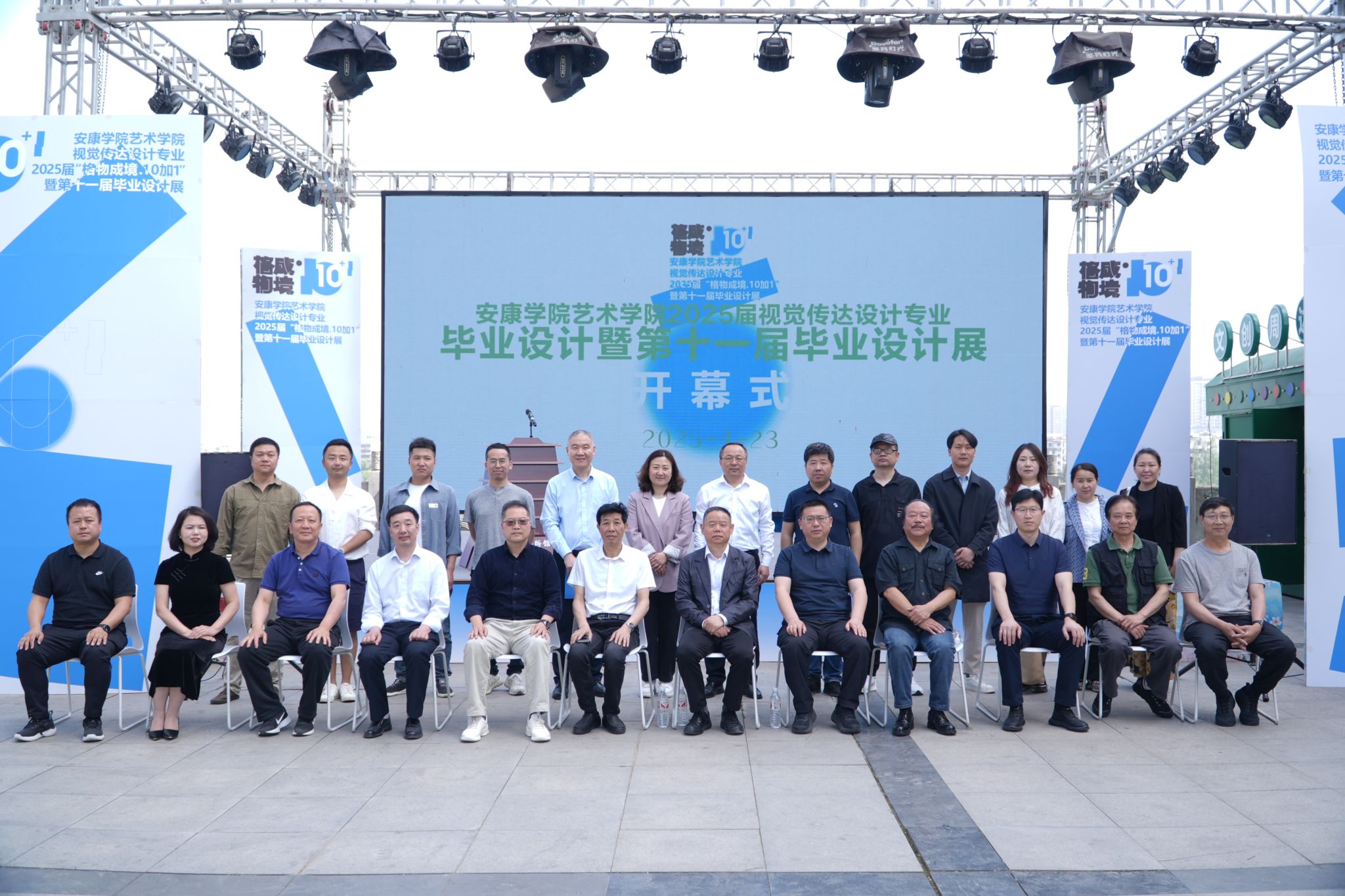4月23日下午,我校艺术学院“格物成境·10+1”2025届视觉传达设计专业毕业设计展在安康美术馆盛大开幕。校党委副书记、纪委书记、监察专员安永强,党委副书记余谦,安康市文联主席李春平,市美协主席、陕南画院院长章长青等领导嘉宾出席活动,160余名师生及行业代表共同见证展览启幕。开幕式由艺术学院副院长孙海洋主持。