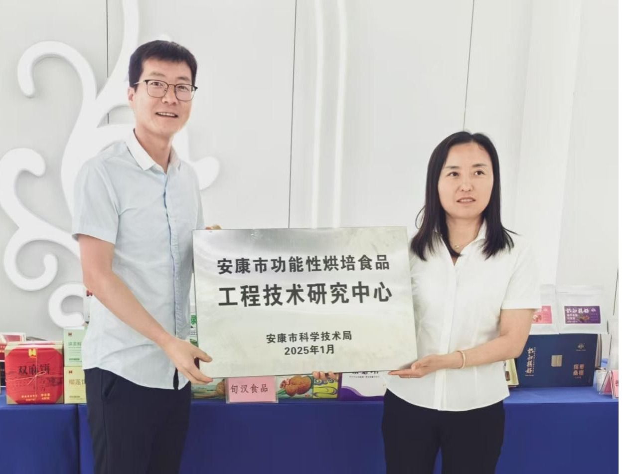 本次路演活动还举行了“安康市功能性烘焙食品工程技术研究中心”揭牌仪式。该中心由安康市科技局副局长刘安琴揭牌,王自超博士牵头与旬汉食品协议共建,并于2025年1月被安康市科学技术局认定为安康市首批工程技术研究中心。该中心的成立,是我校科技服务地方经济发展的重要举措,将为安康市功能性烘焙食品领域的技术创新和产业发展提供有力支撑。