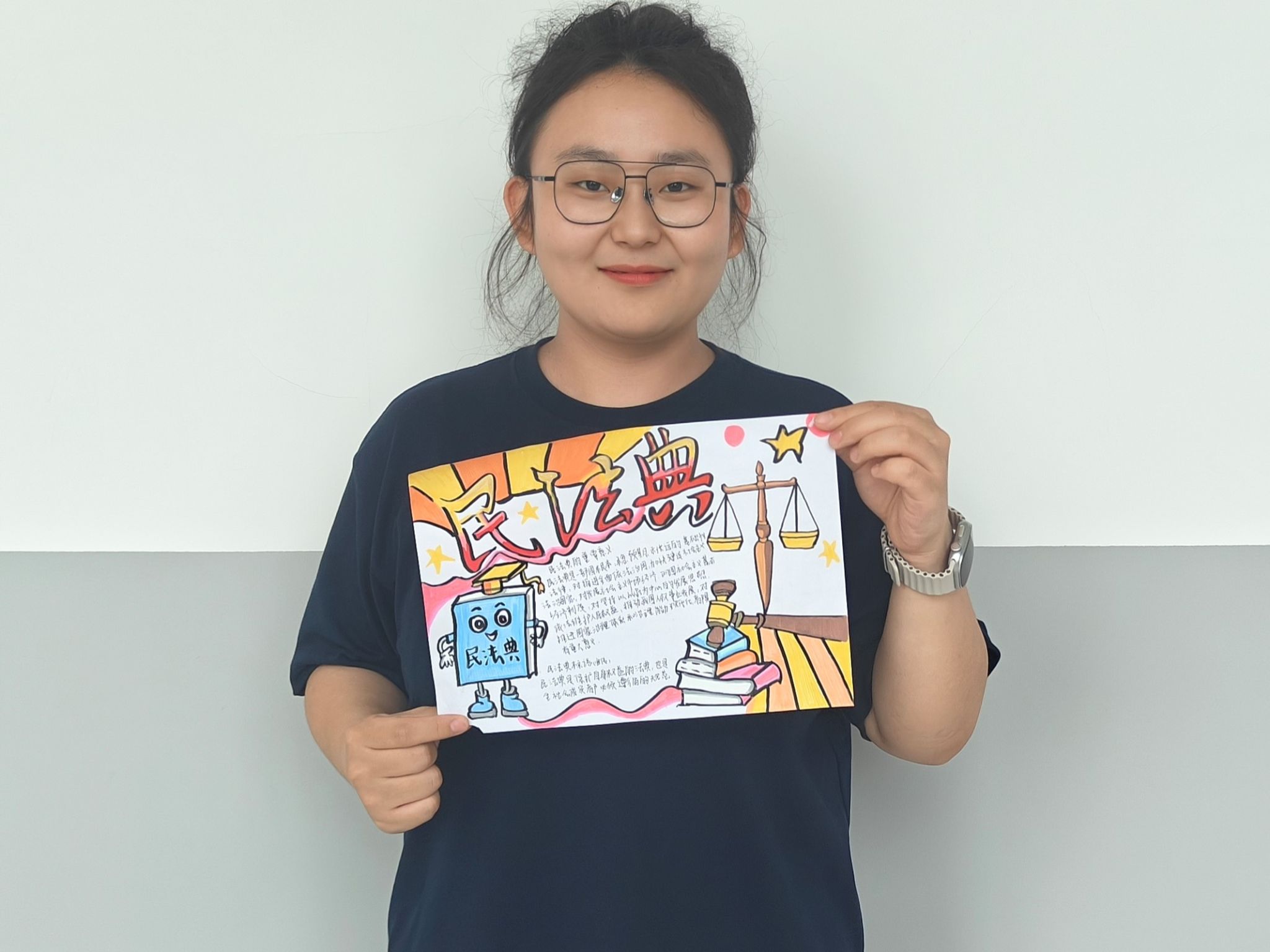 为创新普法形式,学院团总支以“画笔绘法典,法治润心田”为主题举办民法典学习主题画展。同学们热情参与,以画笔诠释对民法典的理解。同学们有的通过描绘生活场景,生动展现民法典在日常生活中的具体应用;有的以抽象的艺术形式,深刻表达对法治精神的感悟。每幅作品都凝聚着同学们对民法典的学习和思考,将法治教育与美育有机结合,让抽象的法律理念以更鲜活的方式深入人心,进一步激发了同学们学习法律知识的热情。