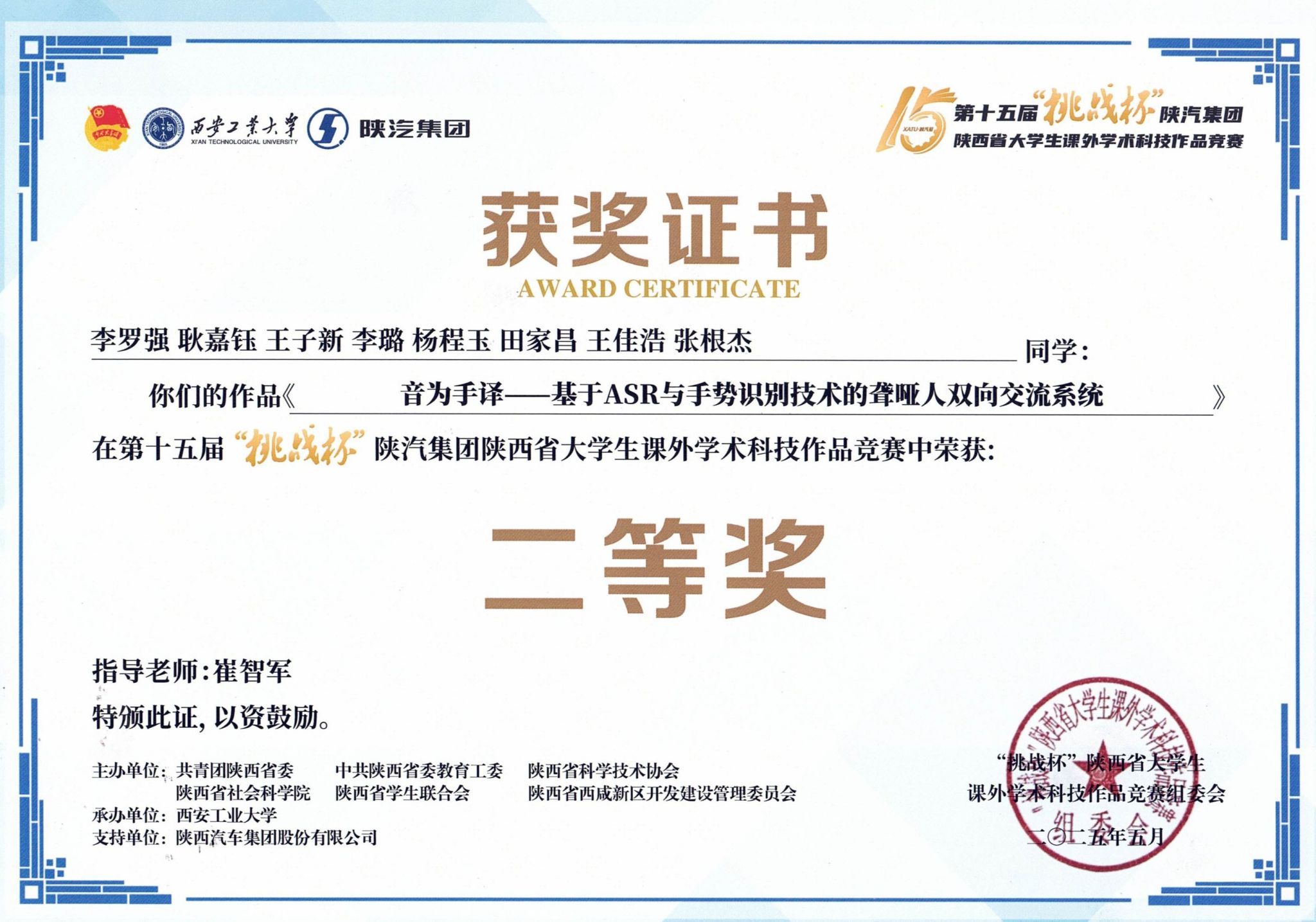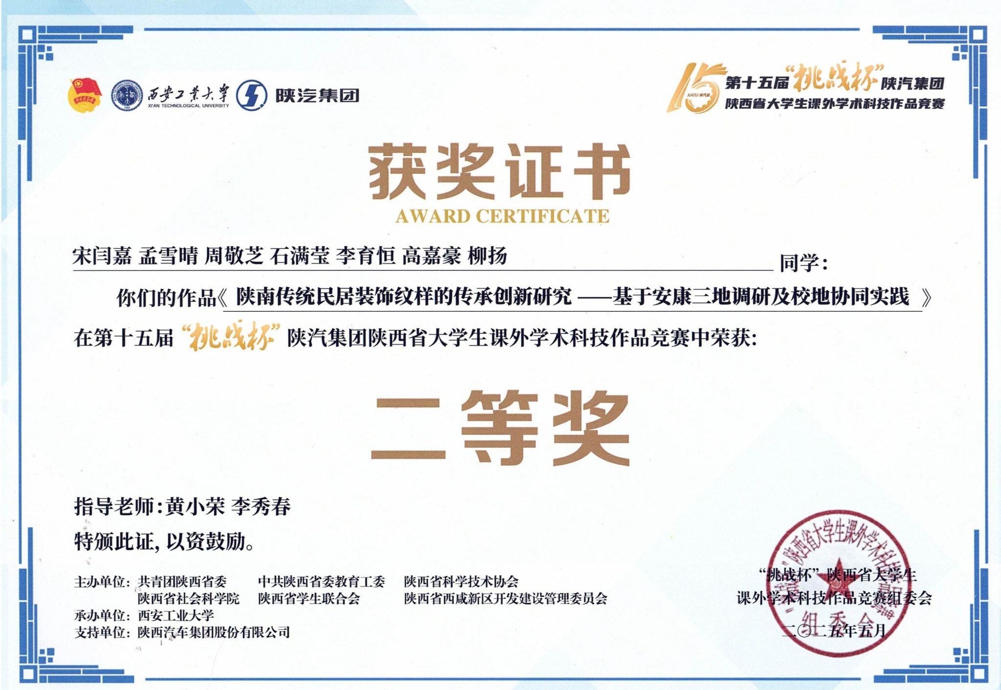 近日,由团省委、省委教育工委、省科协、省社科院、省学联与省西咸新区管委会联合主办、西安工业大学承办的第十五届“挑战杯”陕汽集团陕西省大学生课外学术科技作品竞赛落下帷幕。我校学子在竞赛中表现优异,斩获二等奖2项、三等奖5项,展现出扎实的学术素养与创新能力。