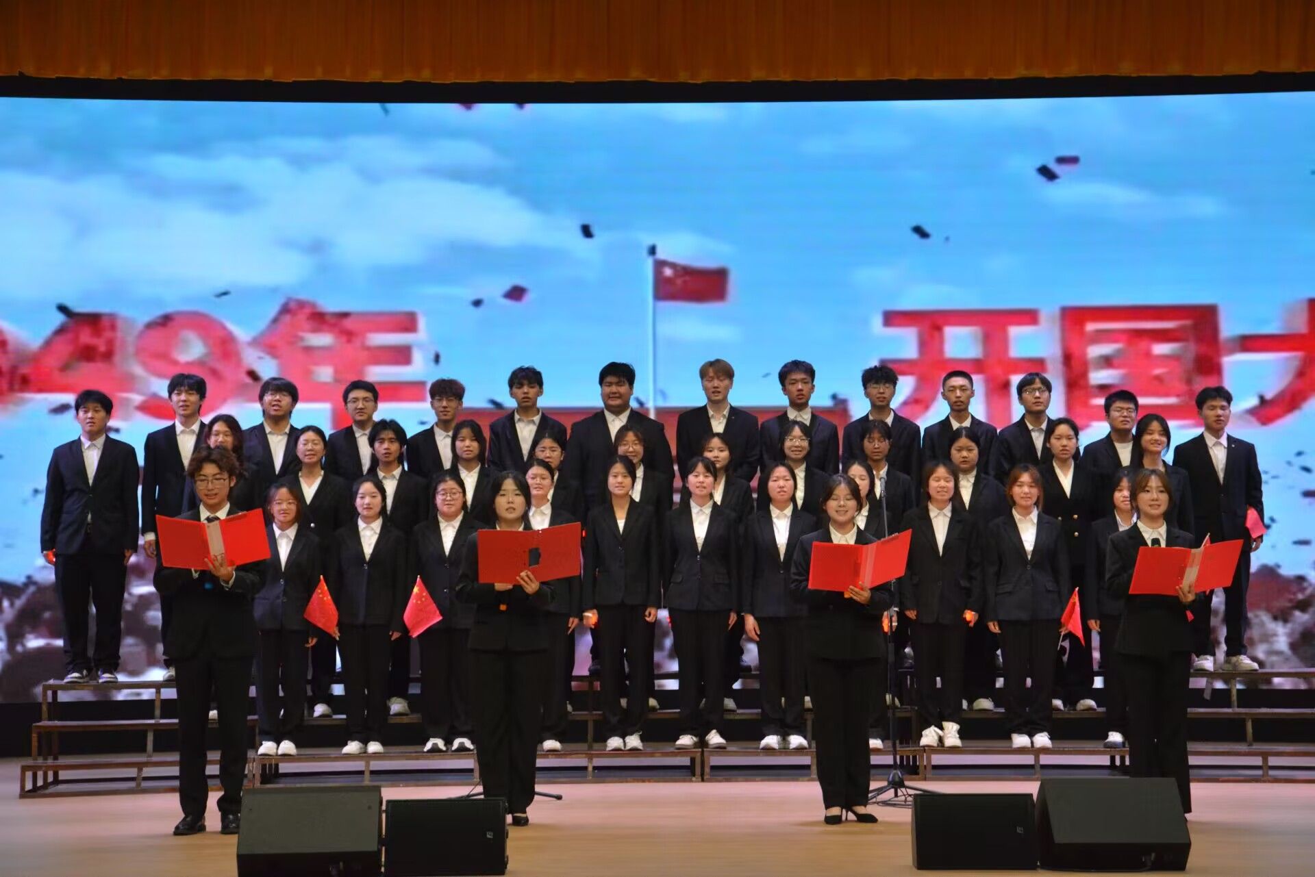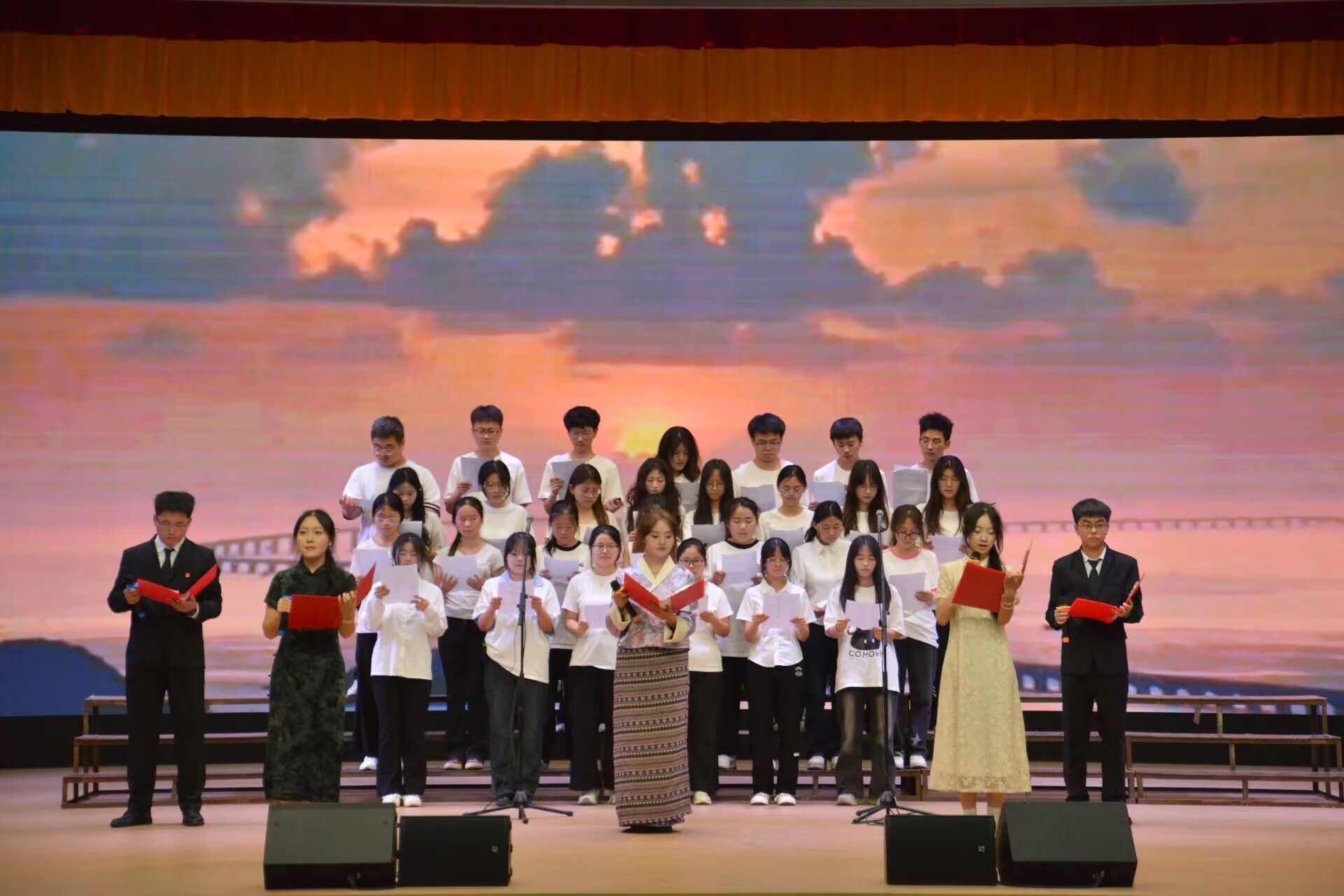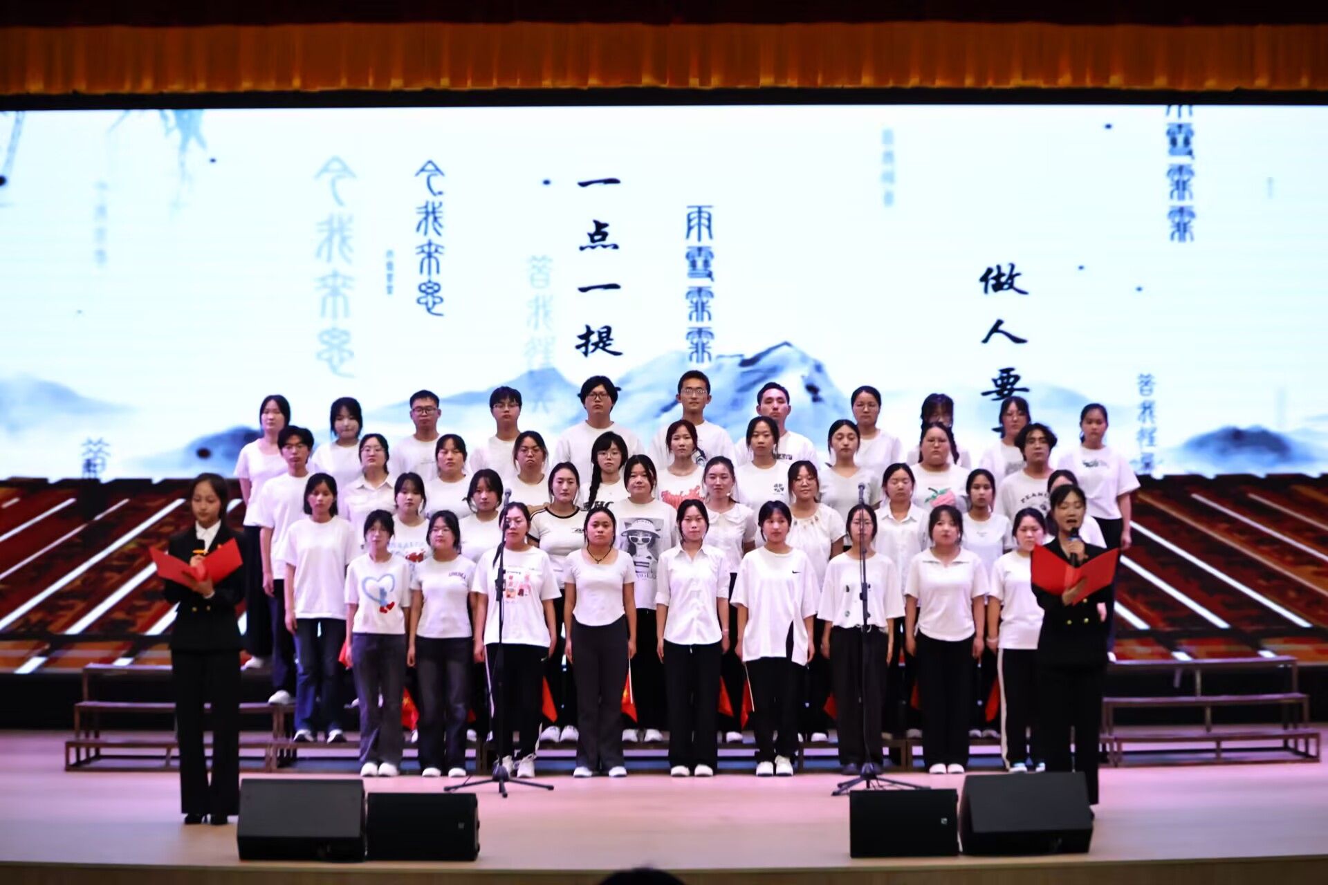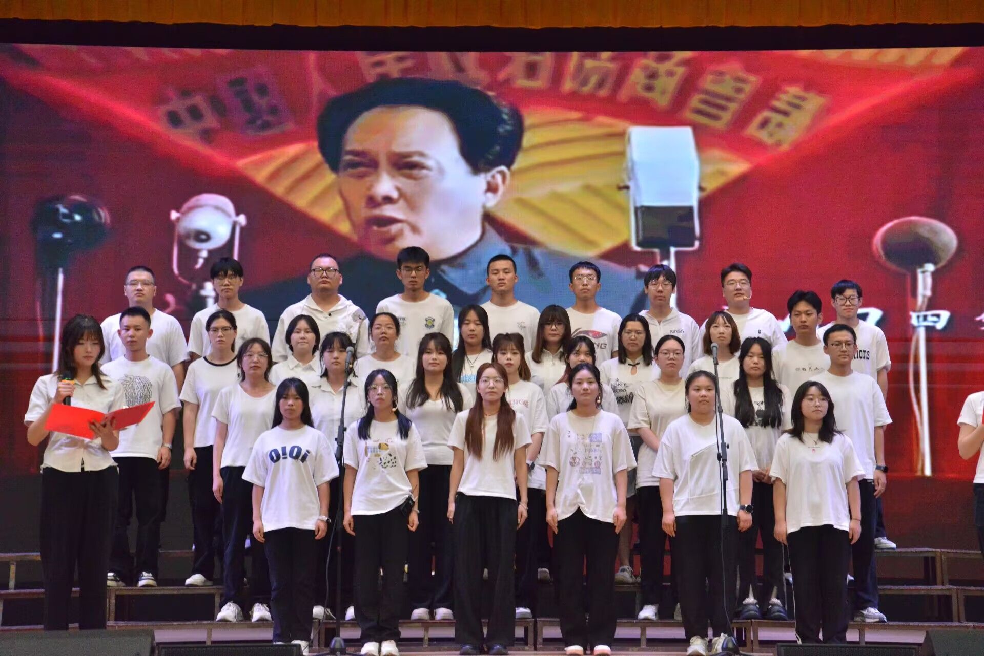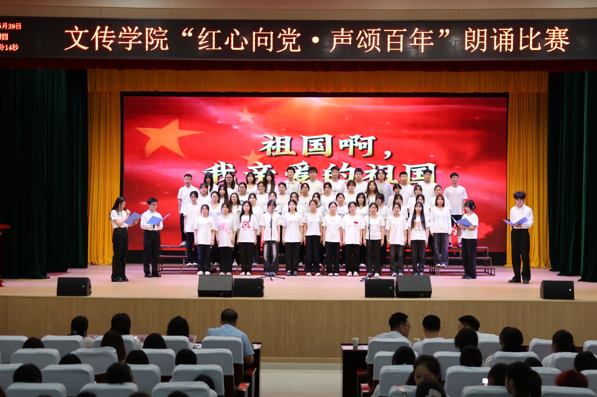 为纪念中国人民抗日战争暨世界反法西斯战争胜利80周年,大力弘扬爱国主义精神,5月29日晚,文学与传媒学院在江南校区大礼堂举办“红心向党 声颂百年”主题朗诵比赛。学院师生以声传情、以诵致礼,用充满张力的语言艺术致敬革命先烈、礼赞百年征程。