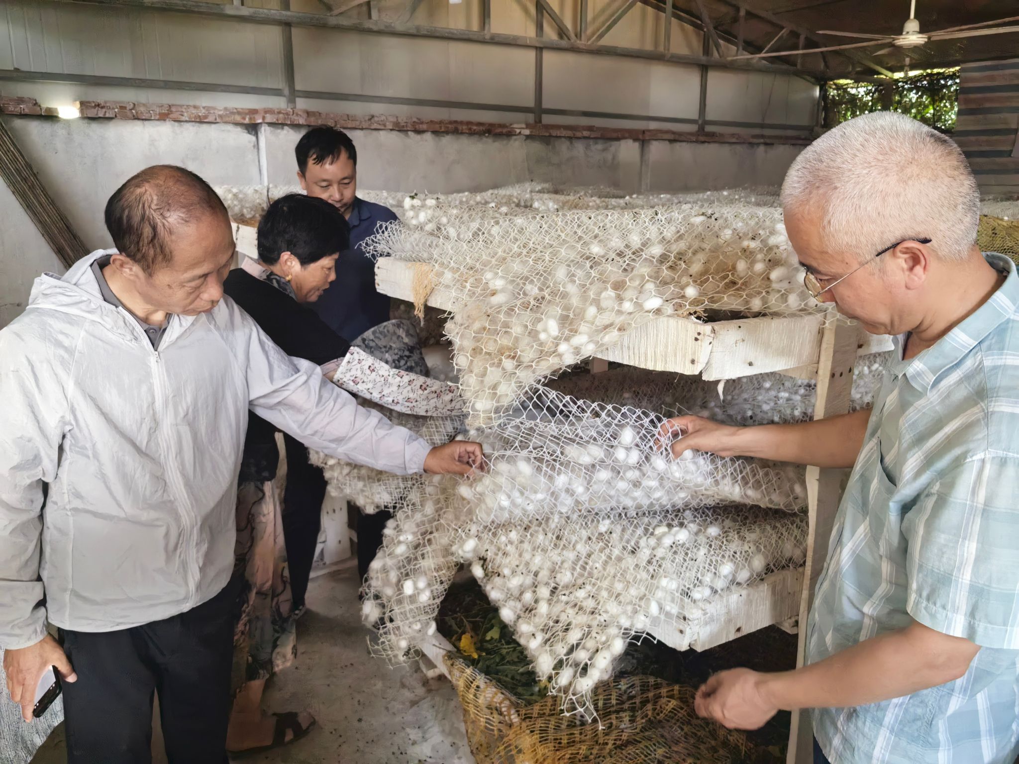 5月29日,彭云武研究员、教师张笙源同安康市蚕桑产业发展中心贺才厚高级农艺师、汉滨区蚕茶果技术中心副主任孙伟等一行前往五里镇刘营村,为当地多户蚕农提供全方位、精准化的蚕桑技术服务。