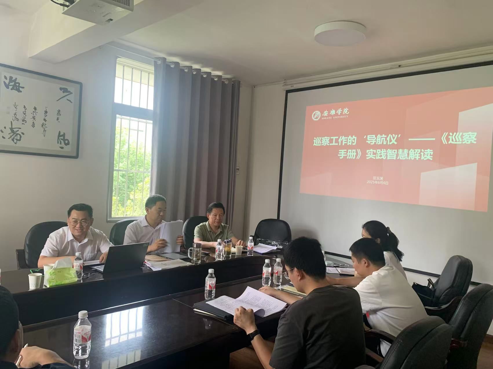 在经验交流环节,陈国杰结合担任2024年第一轮巡察组副组长的工作经历,从巡察流程把控、问题线索挖掘等方面,分享了大量可借鉴的实战经验;王开忠对《中共安康学院委员会2025年第一轮巡察工作实施方案》进行深入解读;屈玉渊结合自身经验,分享了《中共安康学院委员会巡察工作手册》使用心得,并与参会人员就手册应用中的重点难点展开深入交流研讨,有效解决了大家的疑惑。