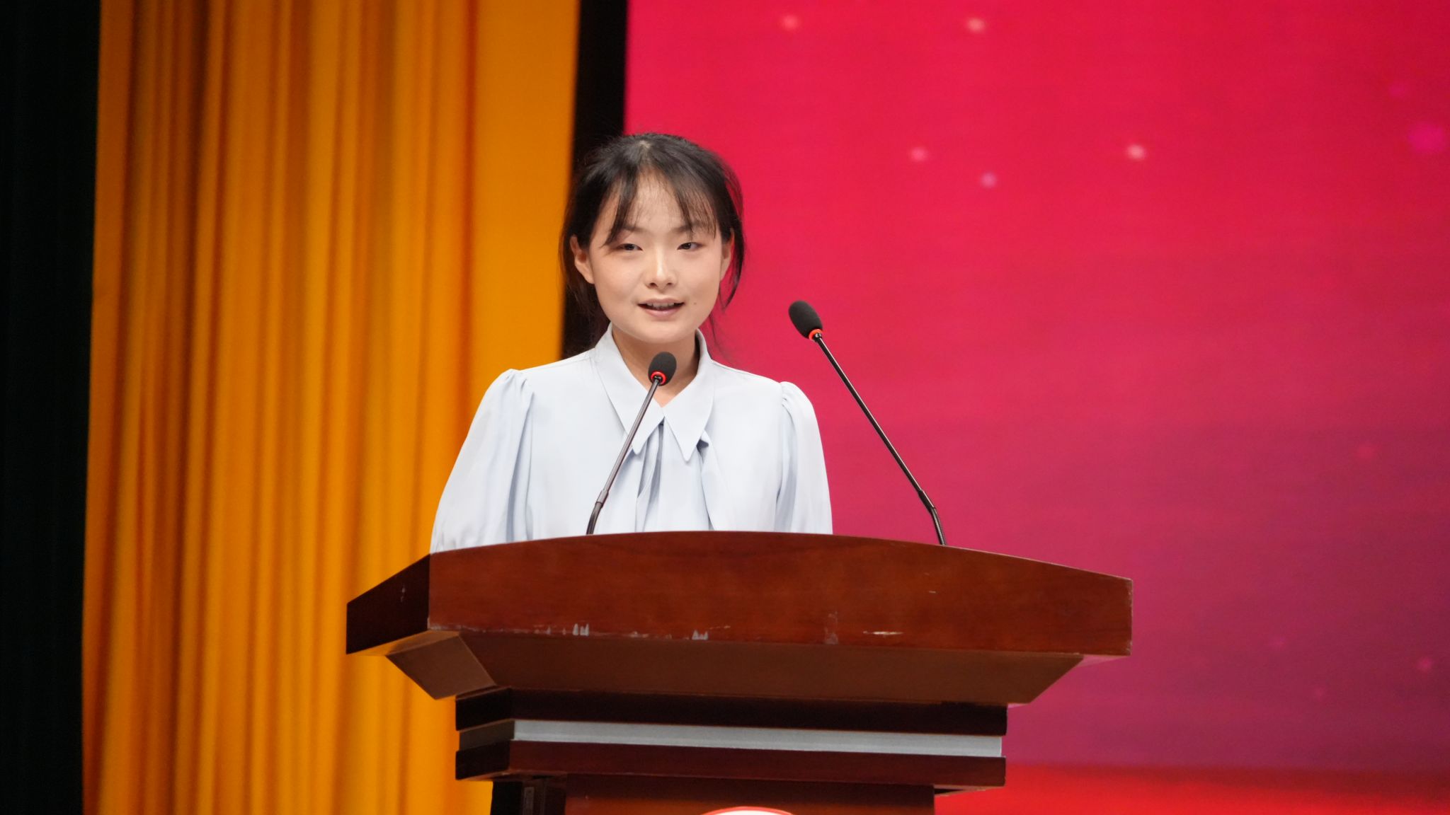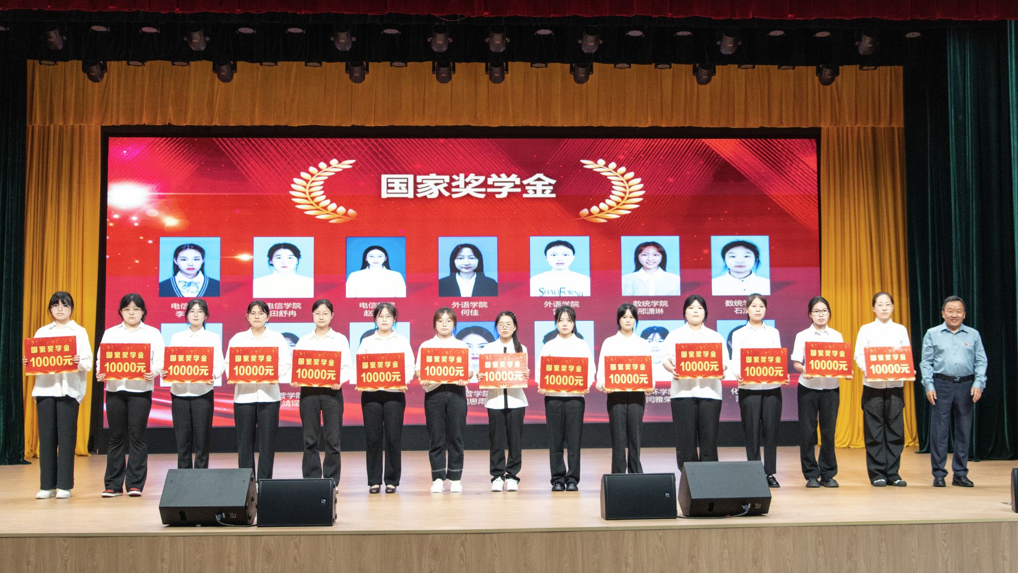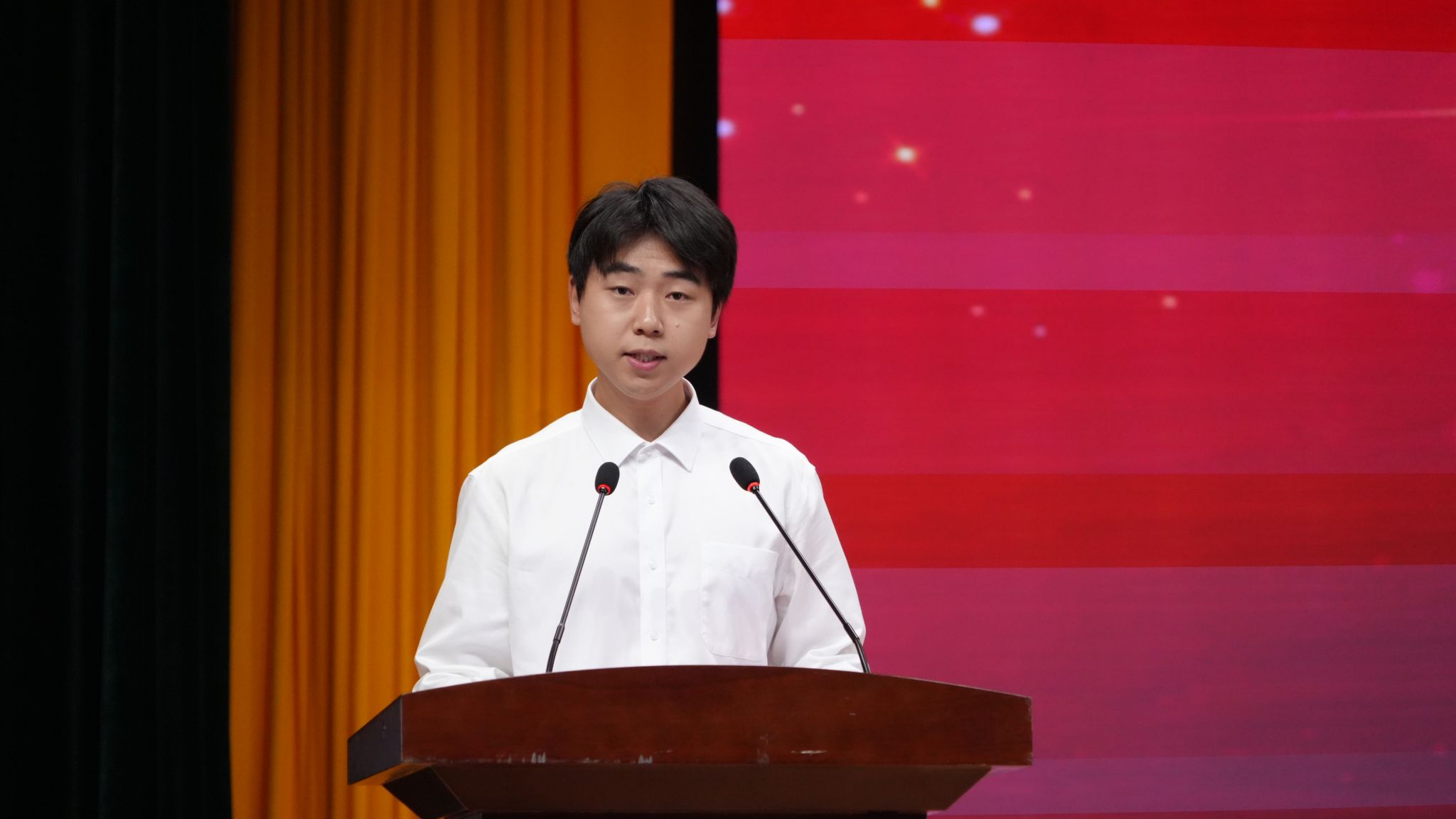 表彰大会在雄壮的国歌声中拉开序幕。安永强、余谦、屈险峰分别宣读了奖学金、优秀毕业生、优秀学生干部、文明班级、文明宿舍、心理健康教育文化节、征兵工作等相关表彰文件。外语学院学生王佳程、马克思主义学院学生林淑琪分别代表2025届毕业生、国家奖学金获得者发言,他们分享了自身学习成长和实践感悟,鼓励全体同学继续保持昂扬奋进的姿态,不断追求更高的目标。