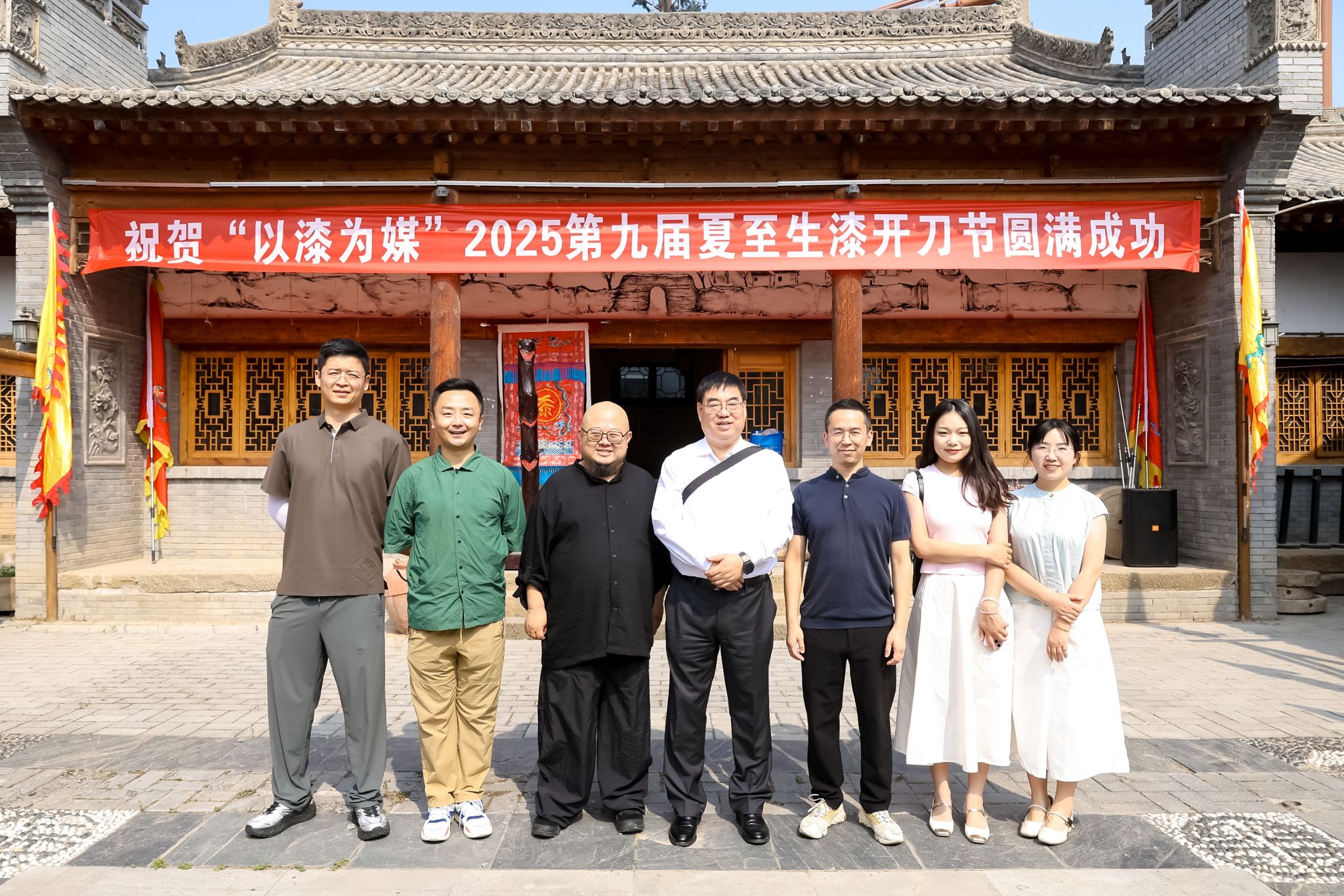 为深化艺术学科专业建设,加强与传统生漆工艺领域的交流合作,6月21日,在我校农生学院名誉院长黄晓华教授带领下,艺术学院组织毛德龙、赵霞、晏永迎、周继业、王铎五名教师参加陕西省2025“以漆为媒”第九届夏至生漆开刀节活动,同时前往陕西省工艺美术大师肖云峰漆艺工作室、蓝田县陕西漆艺博物馆开展漆艺文化调研活动。