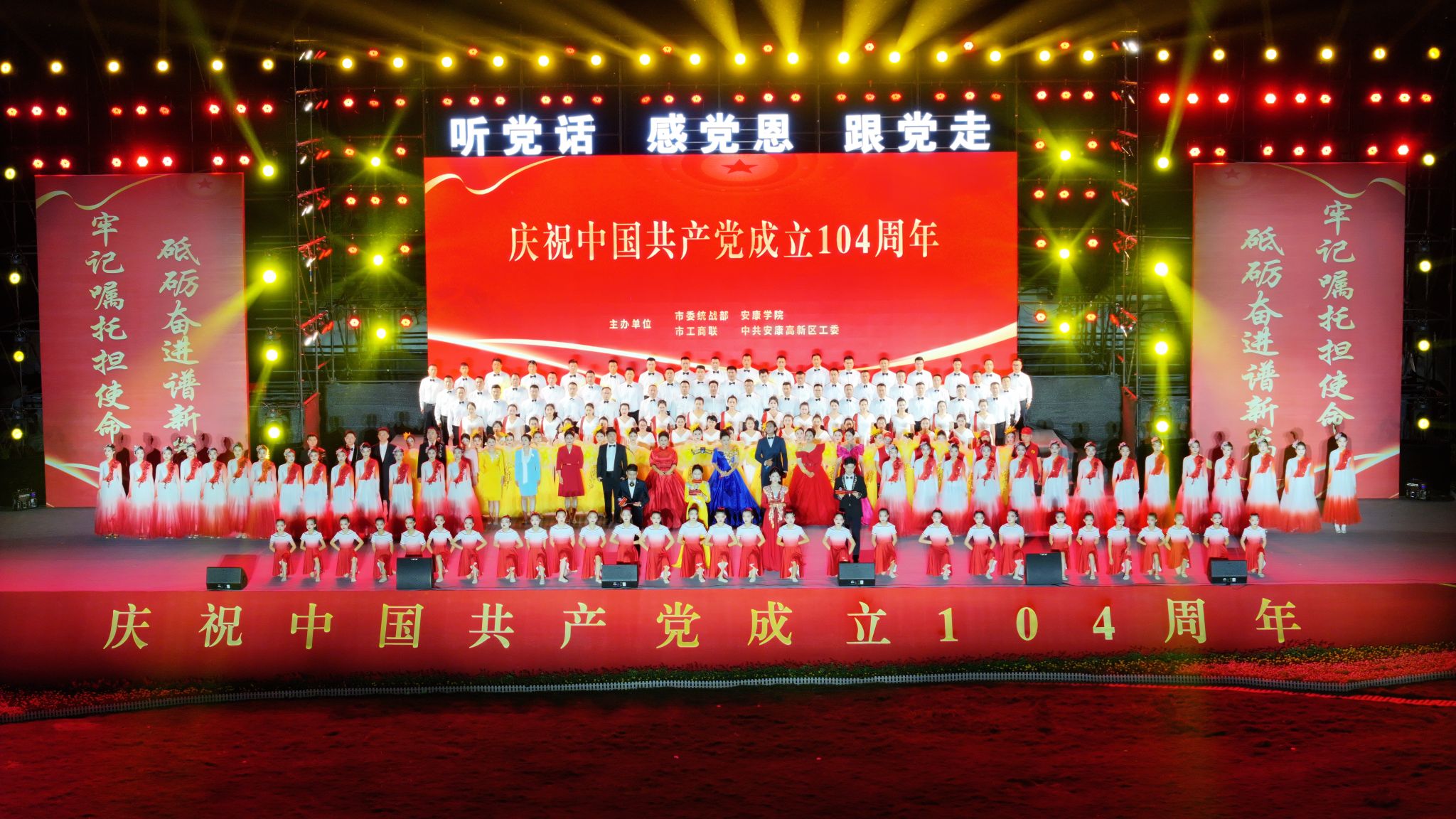 近日,由市委统战部、安康学院、市工商联、中共安康高新区工委联合主办的“牢记嘱托担使命、砥砺奋进谱新篇”庆祝中国共产党成立104周年主题活动在高新区举行。安康市人大主任王彪,安康市委常委、统战部部长、高新区党工委书记罗武侠,安康学院党委副书记余谦等领导与现场观众共庆党的生日。