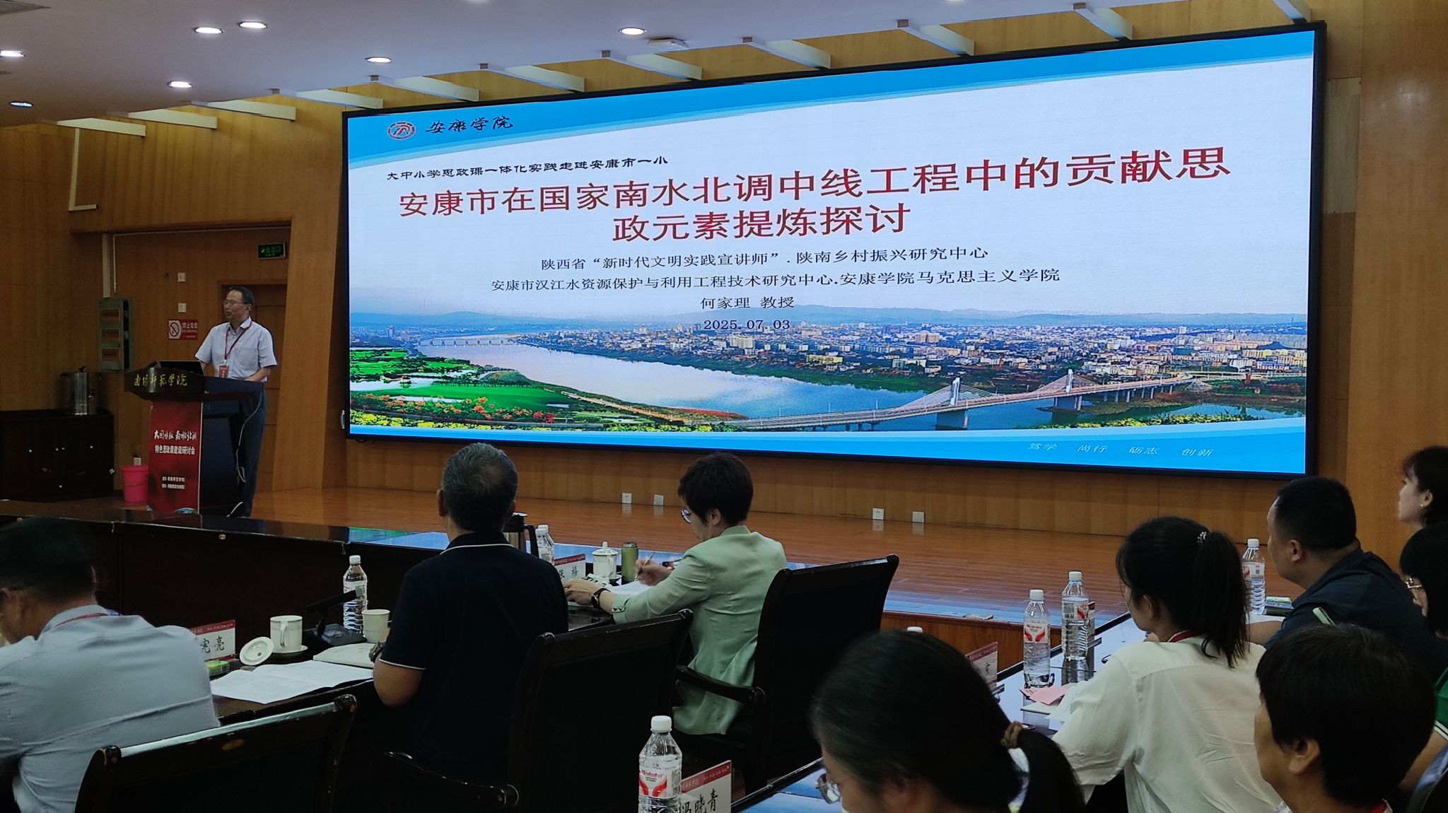 会议主旨报告阶段,我校马克思主义学院何家理教授作了题为《安康市在国家南水北调中线工程中的贡献思政元素提炼探讨》的发言,从大中小思政课一体化建设要求、安康市在国家南水北调中线工程中的贡献及思政元素提炼等三个方面,介绍了我校的做法和经验,赢得了与会专家的充分肯定。