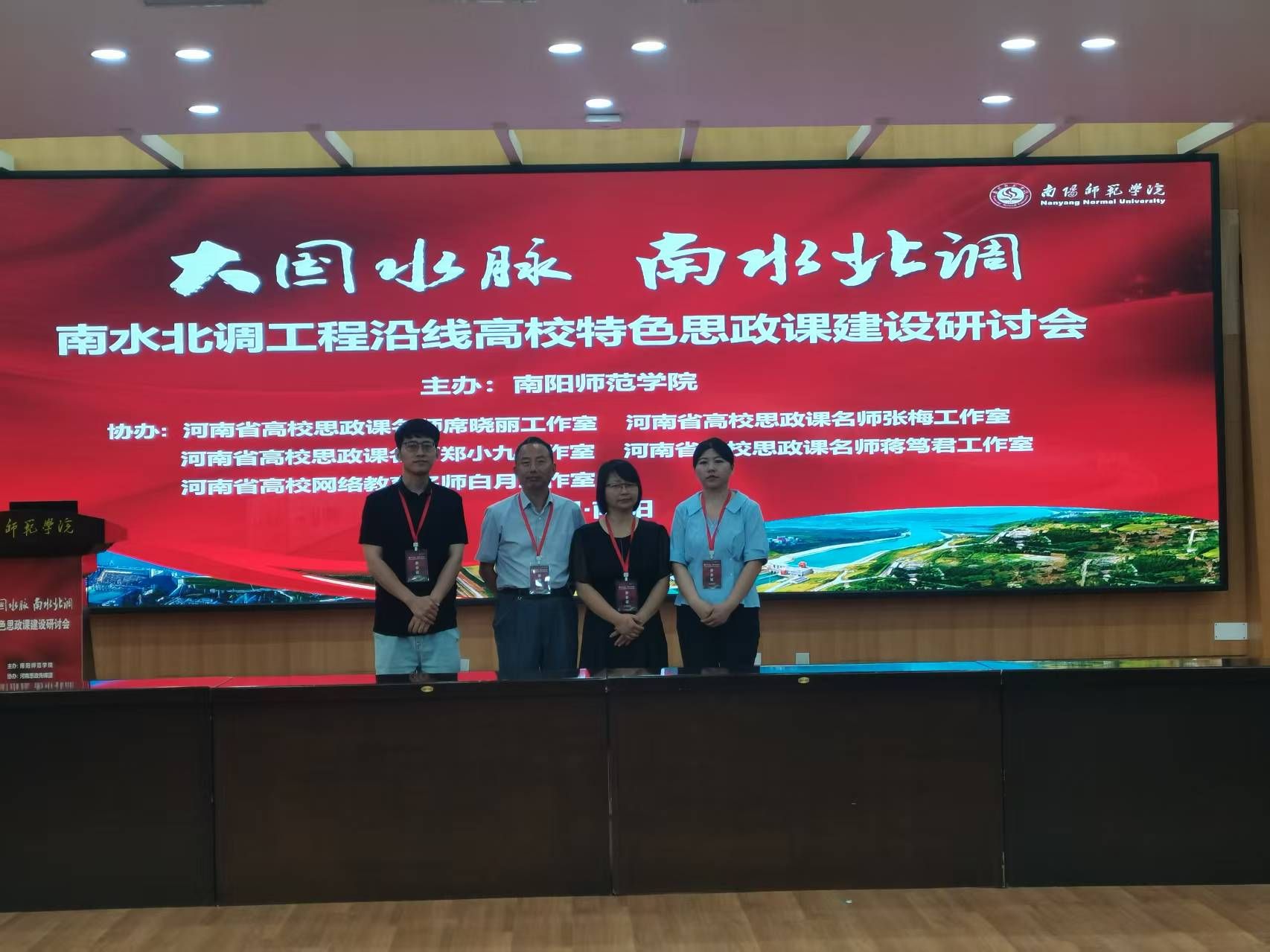 7月3日-5日,由南阳师范学院主办、河南思政先锋团协办的《大国水脉 南水北调》南水北调工程沿线高校特色思政课建设研讨会在南阳师范学院召开,河海大学、首都师范大学等沿线高校教师代表,河南省思政名师专题实践研修活动部分团队成员,南水北调移民精神报告团部分成员等80余人参加此次研讨会。我校何家理、王晓霞、韩艳梅、汪勇四位老师应邀参会。