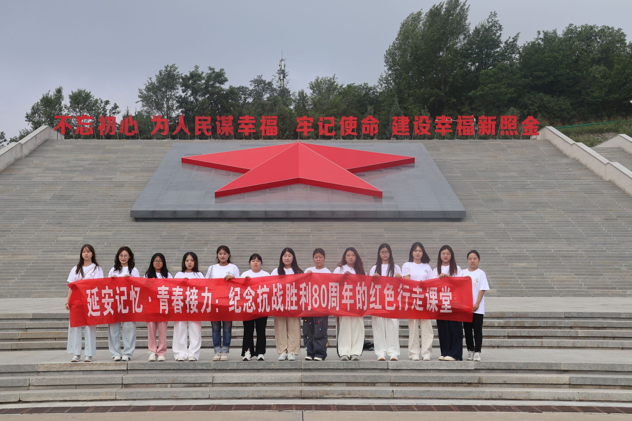 为深入贯彻落实习近平总书记关于“大思政课”和革命文物工作的重要指示精神,在纪念中国人民抗日战争暨世界反法西斯战争胜利 80 周年之际,7月10日至7月15日,我校组织“星火青程——秦巴青年延安精神寻访团”赴延安,参加由陕西省委宣传部、省委教育工委、省文物局联合主办的新时代青年延安行革命文物融入“大思政课”社会实践活动。