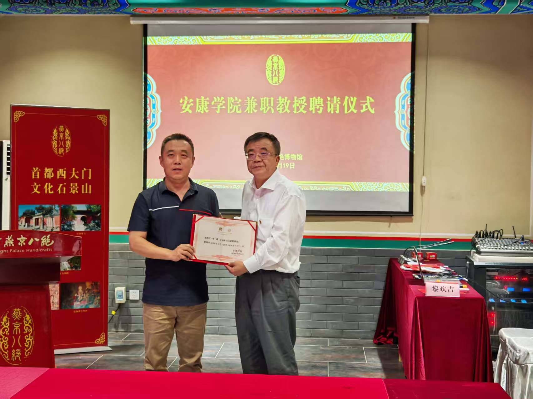 7月19日,学校在北京燕京八绝博物馆举行聘任仪式,聘请国家级非遗传承人柏群任兼职教授。校长余劲出席活动并为柏群颁发聘书。副校长崔晓明,农生学院名誉院长黄晓华及人事处、科研处、党政办等部门参加聘任仪式。