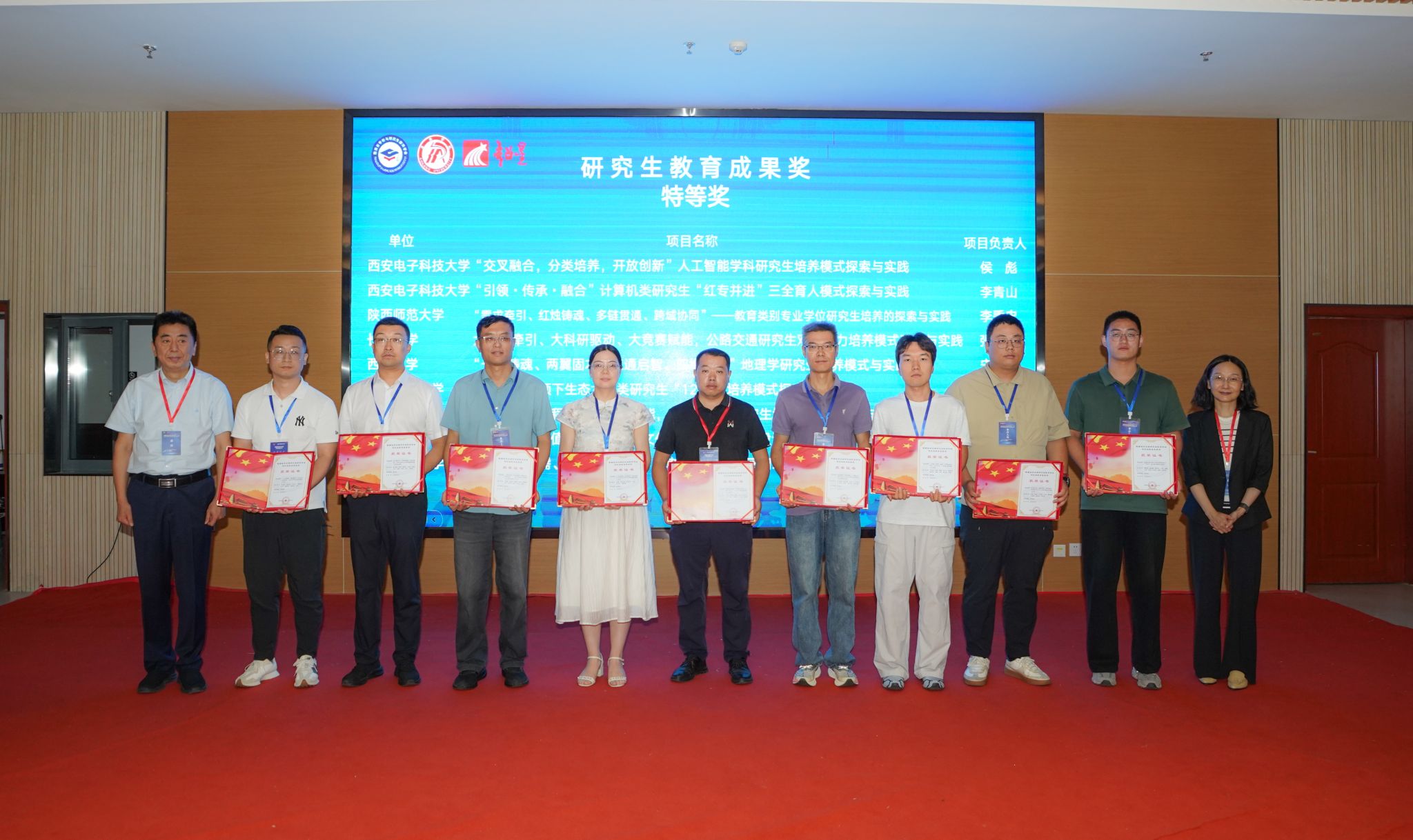 主旨报告结束后举行了研究生教育成果奖颁奖仪式。洪军、崔晓明为获奖单位和个人颁发获奖证书。