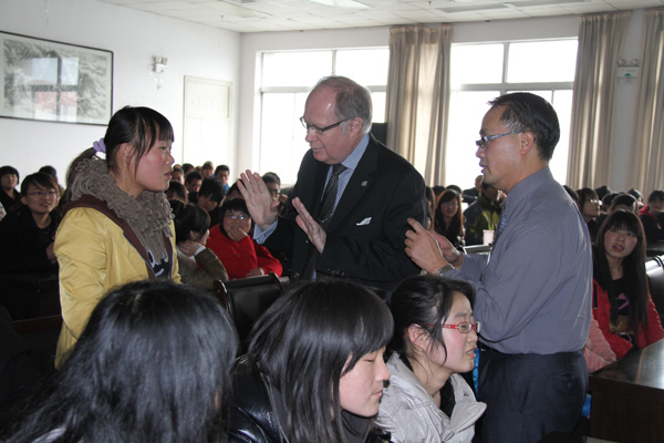 访问团成员,加拿大爱心教育慈善基金会、环球爱心教育基金会创办人,教育家刘南生先生做了题为“教育强国的人生实践”专题演讲。他通过分享自己的成长经历,强调“人生离不开教育,教育改变人生”的真理。提倡要孝敬父母,关爱他人,奉献爱心。访问团成员、加拿大前国会议员Mr.Bryon先生讲述了15次中国行感受到的中国翻天覆地的变化, 激励同学们打好知识基础。