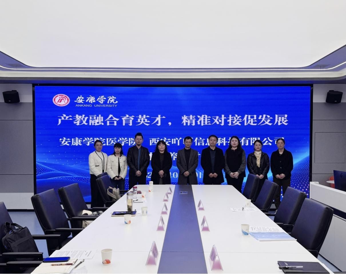 为深化产教融合,精准对接大健康产业人才需求,10月30日,西安吖吖信息科技有限公司代表于帅、赵倩、辛勇等一行应邀来访我校,与医学院围绕校企协同人才培养召开专题座谈会。医学院领导班子成员及各系部主任参会,会议由医学院党总支书记黄勇主持。