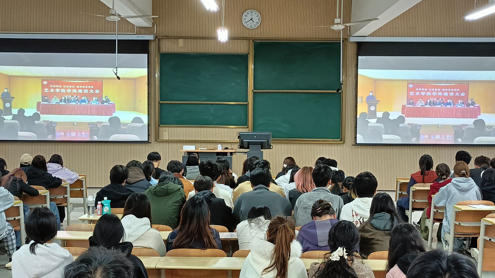 11月5日,艺术学院召开“以学铸魂・以艺修身・涵养优良学风”学风建设大会。副校长屈险峰,学工部部长芦伟、艺术学院领导班子、系主任、辅导员、班主任及学生代表现场参会,23个班级线上同步参与。