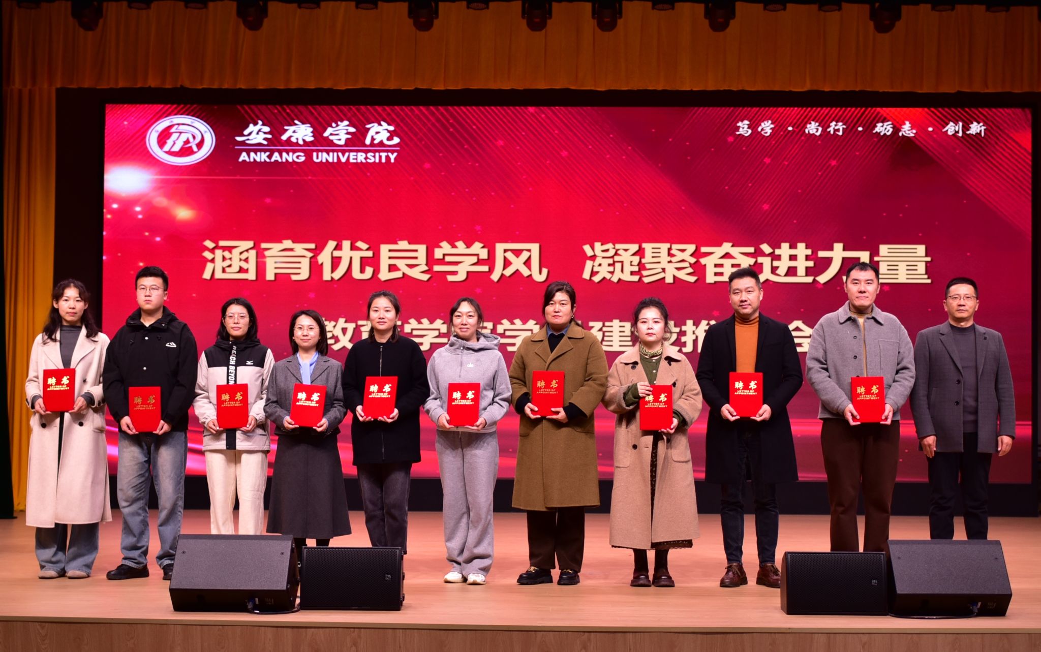 为深入落实《安康学院质量文化建设指导意见(试行)》精神,扎实推进本科教育教学审核评估整改,11月14日,教育学院在江南校区大礼堂举行“深耕质量文化,筑牢育人根基”质量文化建设大会。学院全体教师及学生代表700余人参会,通过制度发布、代表发声、专业汇报、路径阐释四大环节,系统构建“五自”质量文化生态,以协同育人新机制激活高质量发展内生动力。