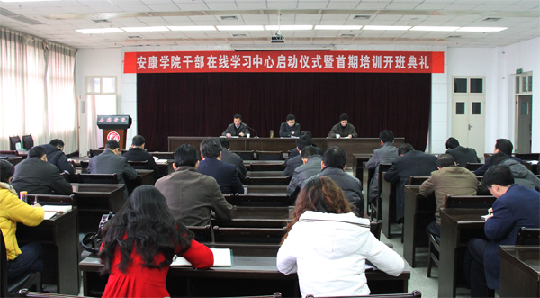 2月29日下午,学院在图书馆六楼报告厅举行安康学院干部在线学习中心启动仪式暨首期培训班开班典礼。党委书记杨涛,副院长陈刚,党委委员、党委组织部长胡波,副处级以上领导干部参加了启动仪式暨开班典礼。启动仪式由陈刚主持。