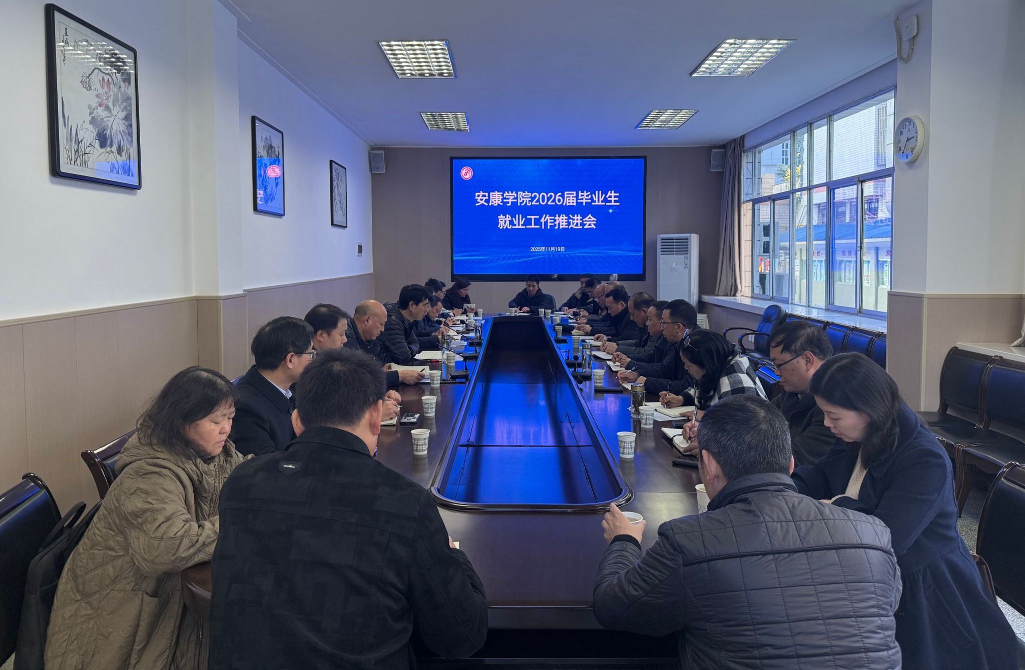 11月19日下午,我校召开2026届毕业生就业工作推进会,总结当前就业工作进展,分析新形势新任务,部署下一阶段重点工作。副校长屈险峰出席会议并讲话,就业指导中心负责人、各二级学院党总支书记及院长参加会议。会议由屈险峰主持。