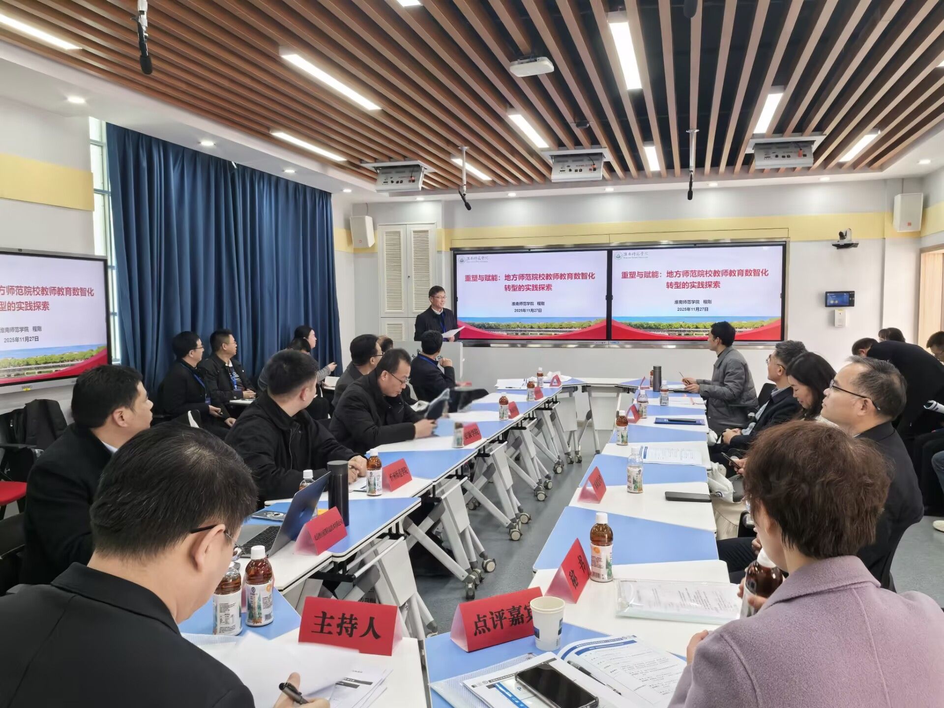 会上,胡海青向与会嘉宾介绍了我校的办学历程、办学定位、专业建设成果等基本情况,随后围绕山区乡村教师队伍建设中存在的问题、我校师范生培养的特色亮点和已取得的成效做了典型发言。分组研讨阶段,我校教师参加了“培养造就新时代高水平教师队伍”“数智赋能教师教育高质量发展的实践探索”两大核心议题,并与其他高校参会代表围绕教师发展、数智赋能教师教育转型进行了深入探讨。