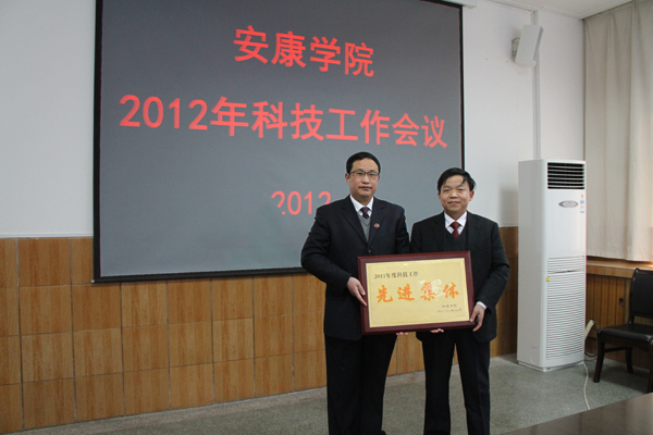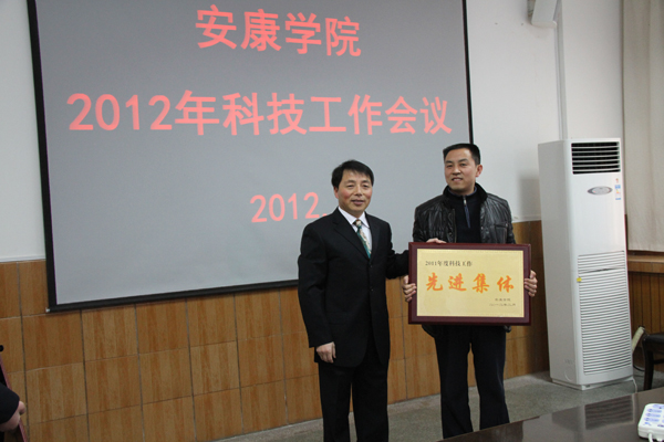 会上胡鸿晓宣读了《安康学院关于表彰2011年科技工作先进集体和先进个人的决定》,向受表彰的科研先进集体和先进个人颁发了奖牌和证书,科研先进集体代表,科研先进个人代表进行了交流发言。