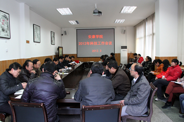 为了进一步提高我院科研水平,安排部署2012年科技工作,我院于3月5日下午在第一会议室召开了2012年安康学院科技工作会议。党委副书记胡鸿晓、副院长向纪明、各院系主任、分管科研副主任、研究中心主任、学科学术带头人以及科研先进个人参加了会议。
