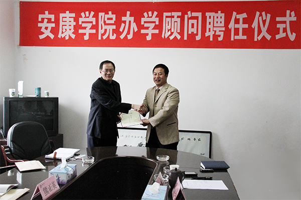 人事处对办学顾问的个人情况进行了介绍。院长王兴林向两位教授颁发了聘书。双方签订了《安康学院外聘专家协议书》。