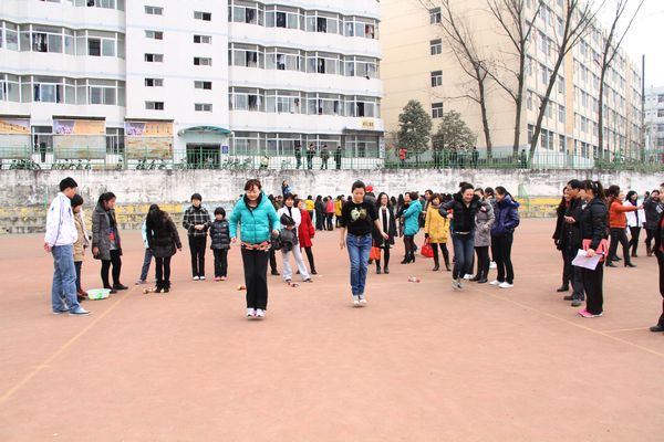 阳春三月,万象更新,在这生机盎然的季节里,由安康学院工会主办、女工委员会承办,体育系协办的庆祝“三八”妇女节趣味体育竞赛活动于3月8日下午两点三十分在学院东校区田径场举行。活动开幕式由学院工会专职副主席许宝林主持,党委副书记、院工会主席胡鸿晓同志致辞并宣布活动开始。300余名女教工踊跃登场、尽显风姿。本次活动为女教工们设计了:乒乓球投篮、踢毽子、50米跳绳跑、30米两人背部运球、沙包进筐、踢“保龄球”、两人三足跑、老公背妻子、集体接力等趣味比赛项目
