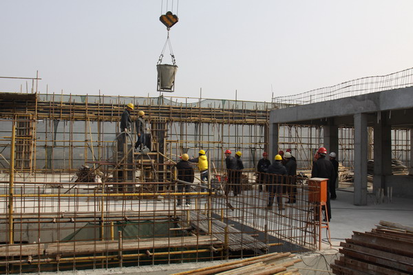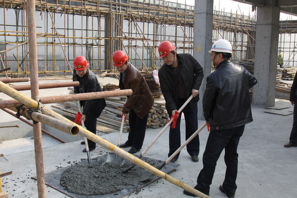 在简短的封顶仪式后,王兴林代表学院向施工企业及监理单位表示感谢。他指出:逸夫科技楼工程是邵逸夫基金资助项目,是新校区的标志性工程,建好逸夫科技楼对学院的意义重大。希望指挥部管理人员、监理单位及施工企业在主体封顶后,进一步做好内部装修和外墙装饰施工,加强工程质量监管,早日竣工投入使用。