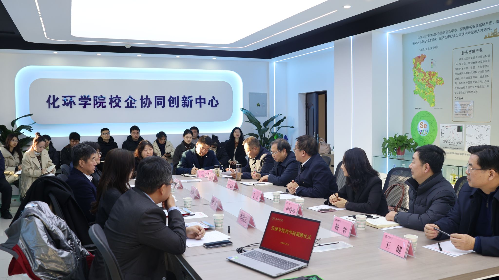 1月7日,学校举行客座教授聘任暨药学院揭牌仪式。校长余劲为澳门科技大学药学院课程主任叶丽教授、李欣志助理教授颁发安康学院客座教授聘书,与两位客座教授、陕西新润药业董事长郑智伟共同为药学院揭牌。三方围绕合作事宜展开座谈交流,副校长崔晓明主持会议,教务处、科研处、合发处、外语学院(国际教育学院)、化环学院、医学院等相关部门负责人及教师代表参加座谈。