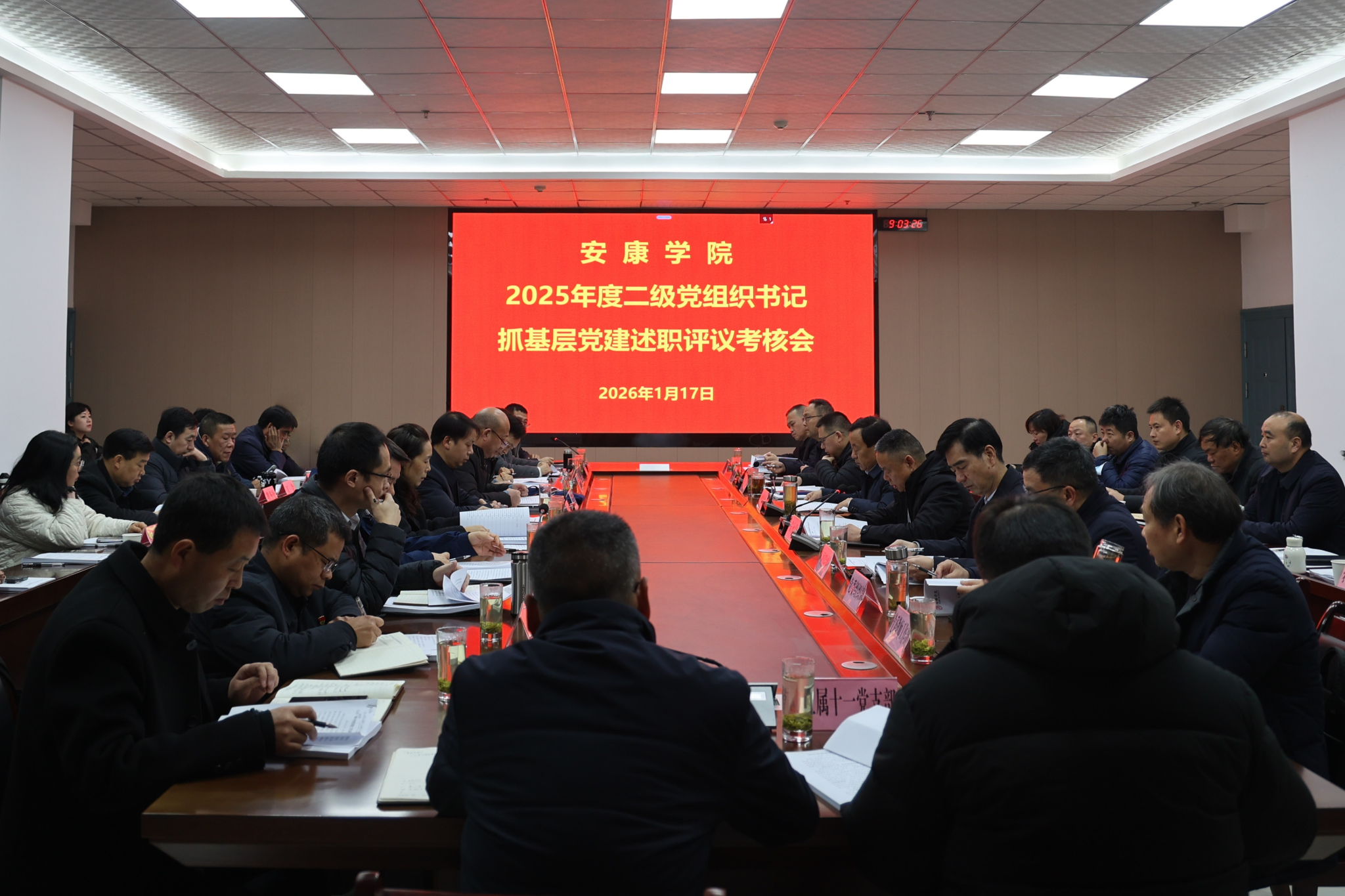1月17日,我校召开2025年度二级党组织书记抓基层党建述职评议考核会。学校领导钟生海、安永强、余谦、屈险峰,党委委员,相关职能部门负责人,二级学院党总支书记、院长、党总支副书记和直属党支部书记参加会议。会议由党委副书记、纪委书记、监察专员安永强主持。