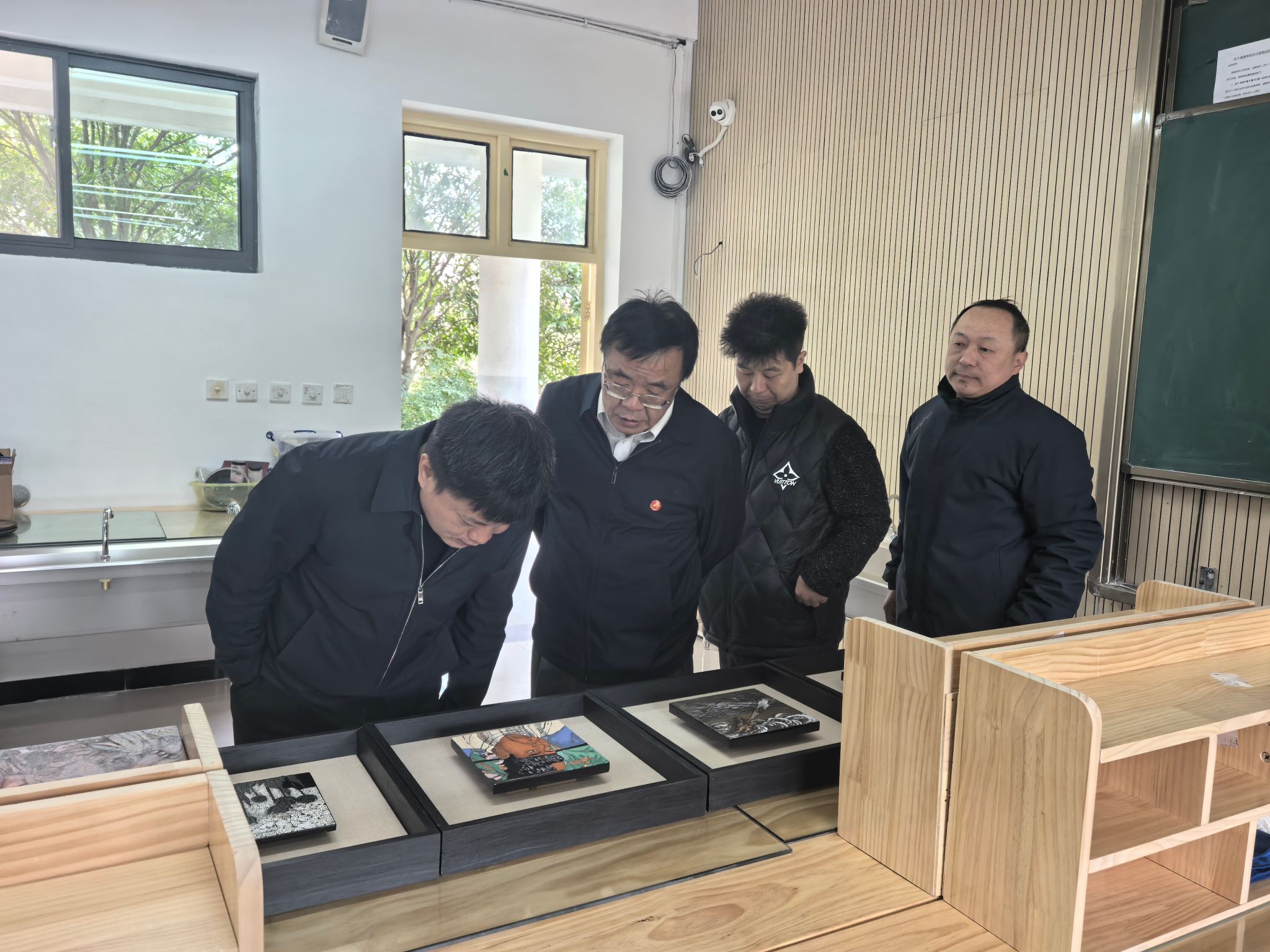 王坤元一行先后参观了校史馆、服务地方成果展馆、漆艺工坊以及汉调二黄传承基地,详细了解我校办学历史、专业设置、校园文化建设和服务区域经济社会发展成效。双方在江北校区逸夫科技楼会议室举行座谈交流。