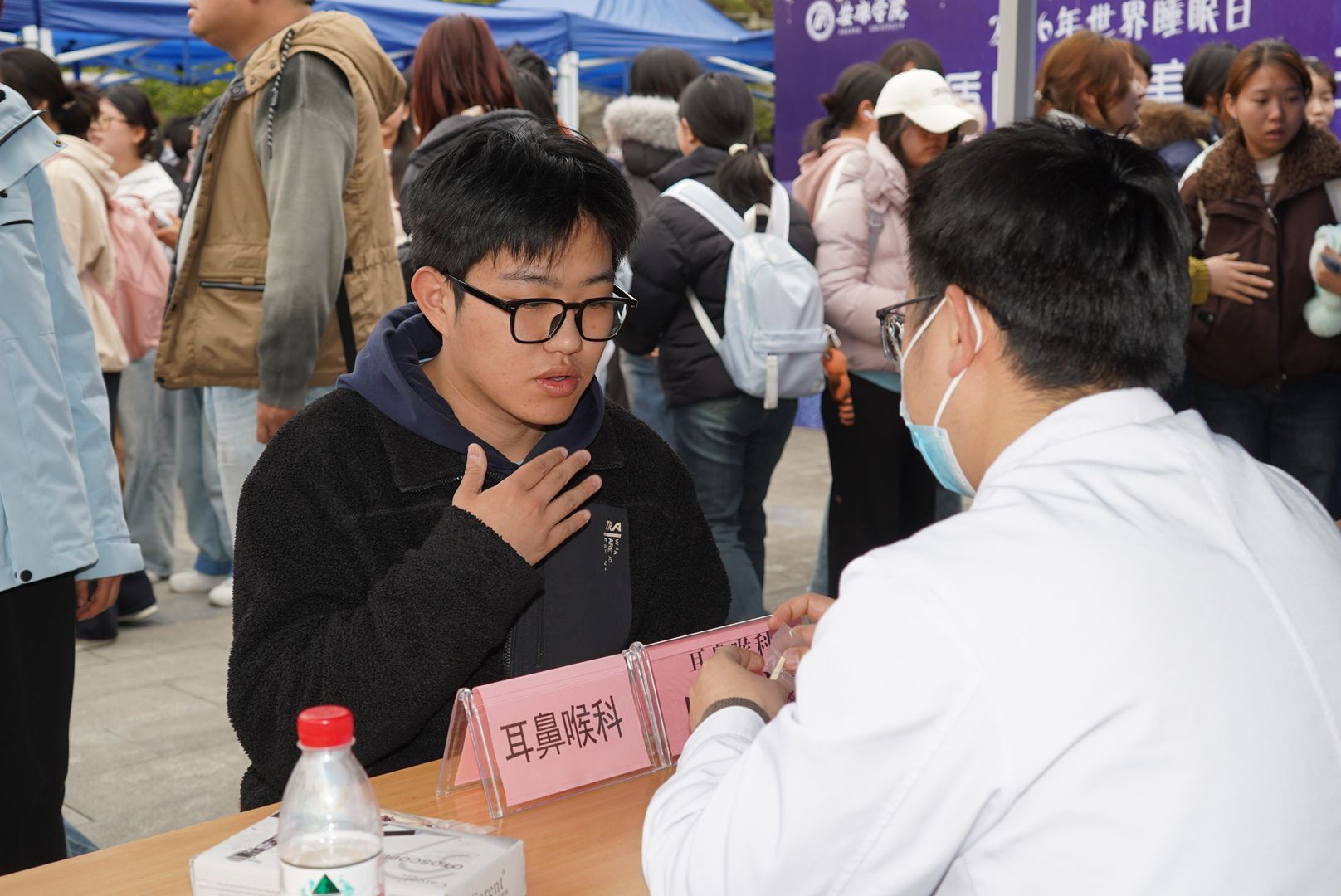 在第26个“世界睡眠日”来临之际,为关爱师生身心健康,引导师生树立正确的睡眠健康理念,3月19日,我校大学生心理健康教育中心联合安康市中心医院,在江北校区举办睡眠心理健康公益义诊活动,为现场师生提供专业健康咨询与诊疗服务,全方位普及科学睡眠及心理健康相关知识。