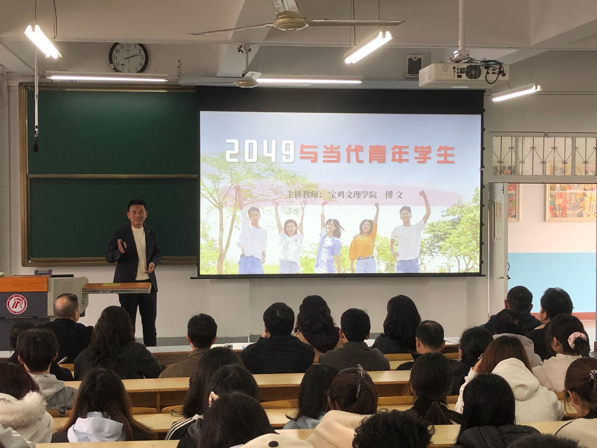 报告会上,傅文以《2049与当代青年学生》为题,以时间为轴线,系统梳理不同历史时期的时代之问,深刻阐释各阶段青年一代的使命与责任,重点围绕“新时代的中国青年如何成长为有理想、敢担当、能吃苦、肯奋斗的新时代好青年”,激励广大青年自觉听从党和人民召唤,坚定理想信念、厚植家国情怀、勇担历史使命,在强国建设、民族复兴新征程中书写青春篇章。整场报告主题鲜明、逻辑严密、案例鲜活,兼具理论高度与实践温度,为我校思政课建设和青年学生成长成才提供了重要示范与指导。