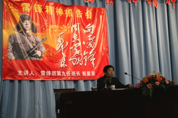 在报告会上,祝星发向大学生们作了《学习雷锋事迹 弘扬雷锋精神》的主题报告。
