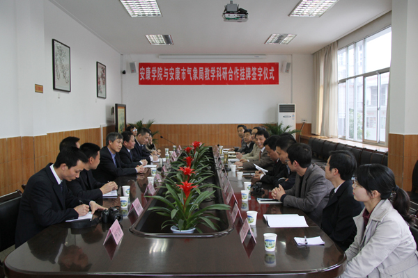 3月29日下午,我院与安康市气象局签订教学科研合作协议暨安康学院地理专业实习实训基地挂牌签约仪式在东校区大会议室举行。安康市气象局局长王毅、副局长崔鑫、总工程师李再刚,市科技局副调研员陈虎,市农业局科长胡先岳,学院党委副书记胡鸿晓、副院长向纪明及双方相关人员参加了仪式。仪式由科技处长刘强主持。