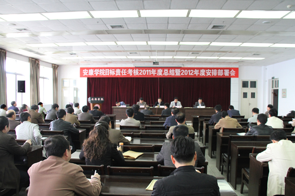 4月13日,学校在图书馆六楼报告厅召开目标责任考核,2011年度总结暨2012年度安排部署会。党委书记杨涛,院长王兴林,党委副书记胡鸿晓,党委副书记、纪委书记闵小平,副院长杨行玉和副处级以上领导干部参加会议。会议由王兴林主持。