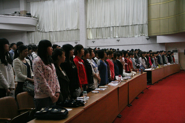 4月14日至15日对第六期发展对象培训班440名学员进行了集中培训。