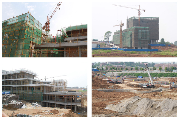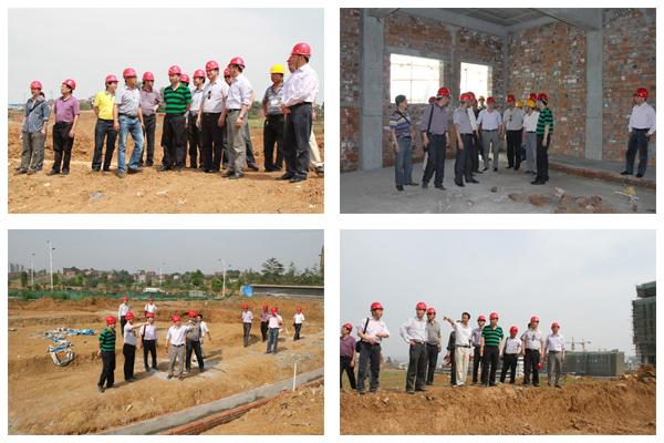 在施工现场,新校区建设领导小组成员在新校区建设指挥部副总指挥、副校长杨行玉和企业施工代表的引导下,对在建项目施工现场进行了逐一察看,详细了解了工程项目的实际进展情况和存在的难点问题。