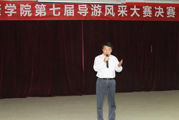 导来君往士,游古风今韵。5月17日晚,安康学院第七届导游风采大赛决赛在学院图书馆六楼学术报告厅举行。安康市政府副市长杜寿平,市长助理、市旅游局局长王汉琳,学校党委副书记胡鸿晓应邀出席本次活动;市武警消防支队长苗文歧、副支队长方斌,安康市福利工贸有限公司董事长、校友张晔女士,紫阳县和平茶厂厂长曾朝和先生陪同出席;来自安康市青年旅行社、华夏铁道旅行社、亚太旅行社的负责人应邀参加本次比赛活动。