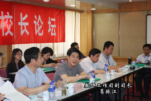 本届论坛的主要议题是“深化教师教育课程改革,大力加强高素质专业师资队伍建设”。大会上部分院校就本校师资队伍建设、教师教育改革发展的具体做法进行了大会发言交流,教育部教师工作司司长许涛作了题为《深化教师教育改革 加快建设高素质专业化教师队伍》的报告。在分组讨论中,各小组分别围绕论坛议题并针对教育部即将出台的《关于建设高素质专业化教师队伍的决定》、《关于深化教师教育改革的意见》和《关于大力推进农村教育改革的意见》三个文件的征求意见稿进行了讨论。王兴林校长主持了第二组的讨论,并就讨论结果在大会上进行总结发言。教育部教师工作司副司长葛振江及教师工作处处长列席了第二组讨论。