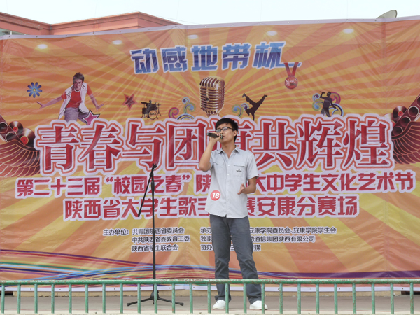 放飞青春梦想,唱响时代旋律,“动感地带”杯第二十三届“校园之春”陕西省大中学生文化艺术节大学生歌手大赛安康赛区于2012年6月2日早上10:00在我校东校区操场隆重举行。