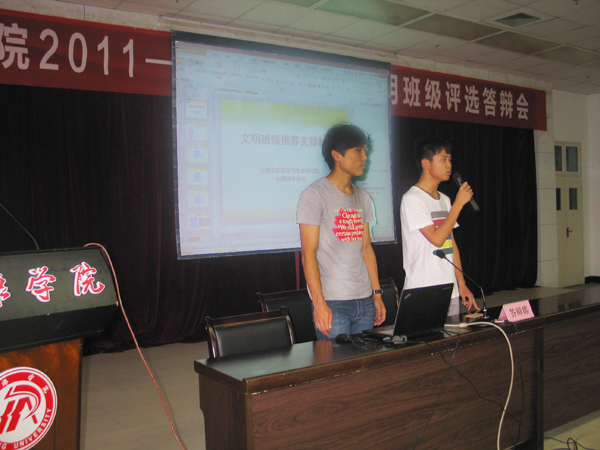 6月5日下午,学工部在图书馆六楼报告厅举行了2011-2012学年度文明班级评选答辩会。党委副书记胡鸿晓、学工部、团委、保卫处等部门负责人和各院系辅导员参加了本次答辩会。